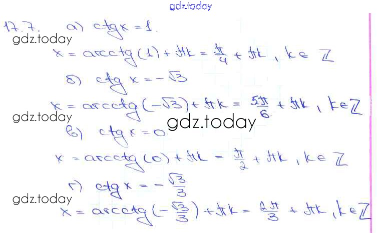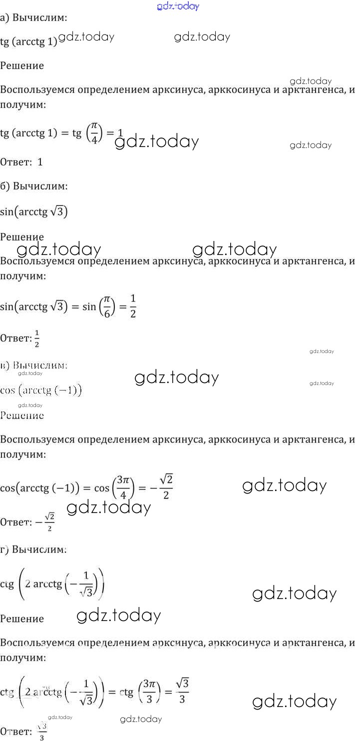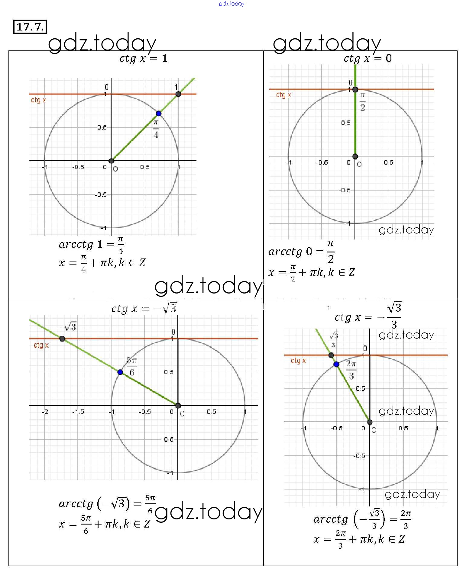 Ответы к §17. Арктангенс и арккотангенс Глава 3 17. 7 Задачнику по Алгебре для 10-11 класса Мордкович, Денищева Базовый уровень Мнемозина 2015
