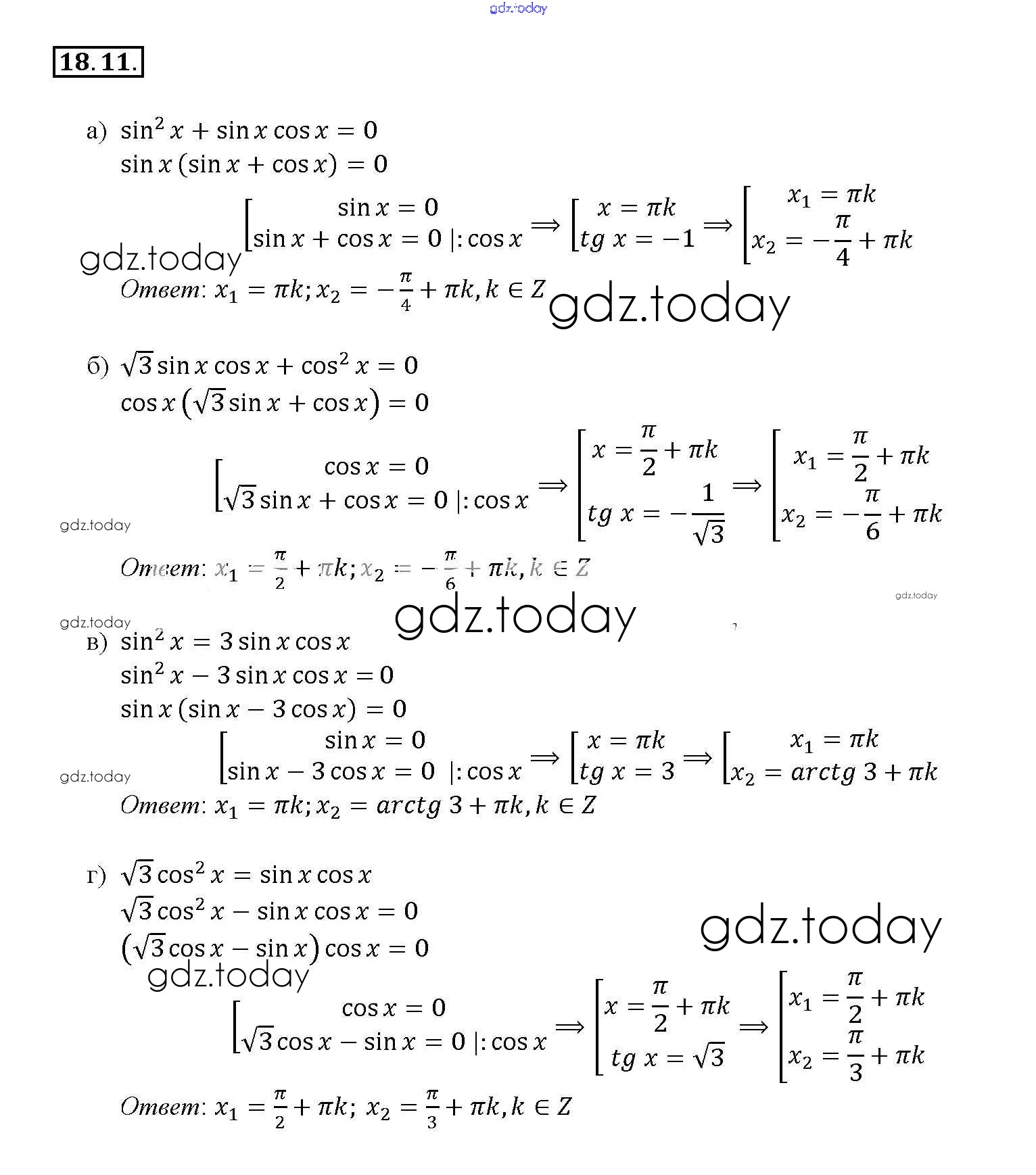 На страницах сайта gdz.today вы найдете учебный и вспомогательный материал, направленный на улучшения знаний школьной программы. ГДЗ - онлайн мир знаний §18. Тригонометрические уравнения Глава 3 18. 11 Задачнику по Алгебре для 10-11 класса Мордкович, Денищева Базовый уровень Мнемозина 2015