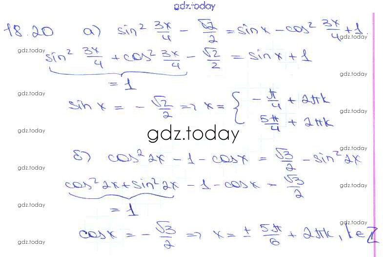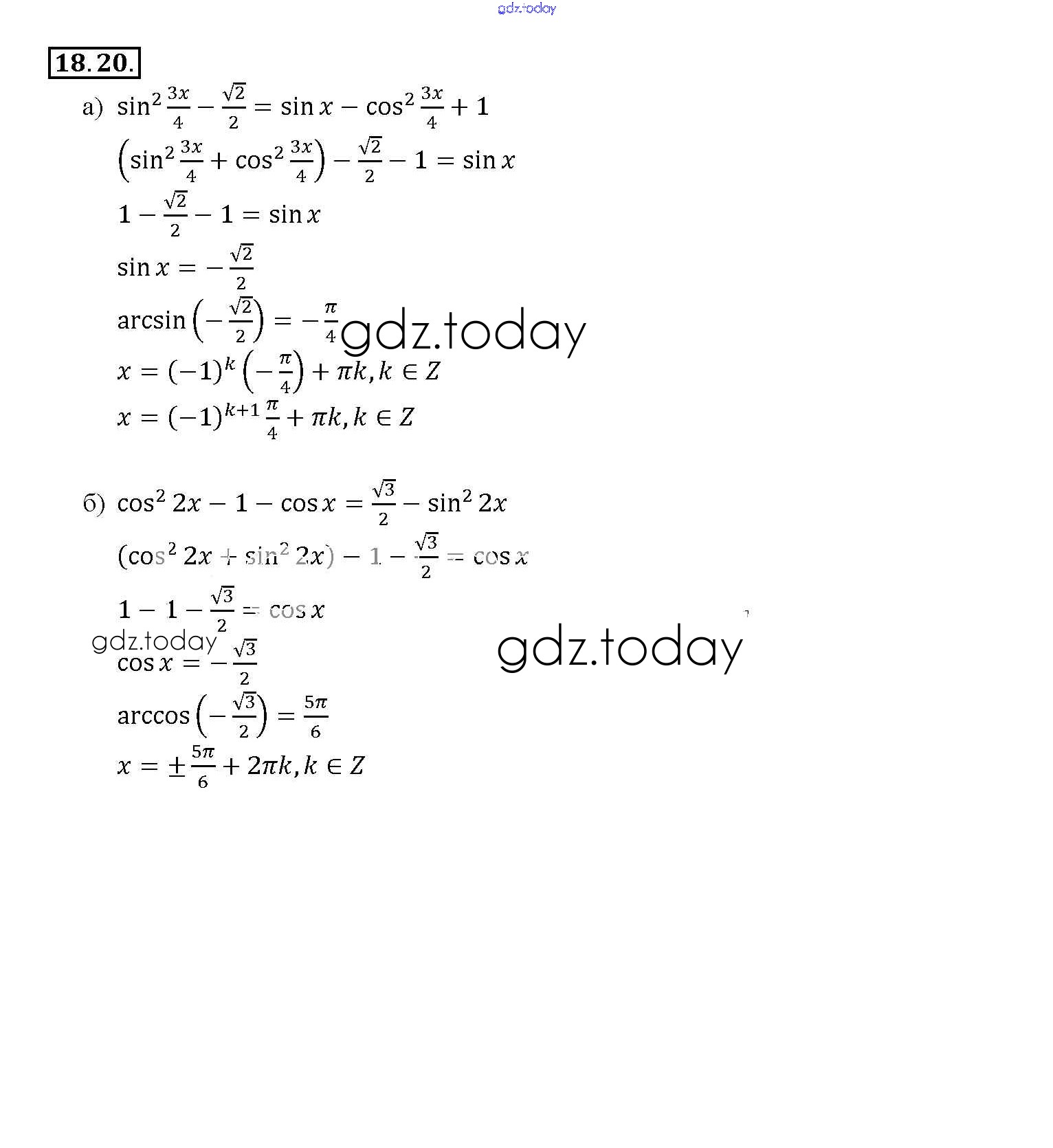 На страницах сайта gdz.today вы найдете учебный и вспомогательный материал, направленный на улучшения знаний школьной программы. ГДЗ - онлайн мир знаний §18. Тригонометрические уравнения Глава 3 18. 20 Задачнику по Алгебре для 10-11 класса Мордкович, Денищева Базовый уровень Мнемозина 2015