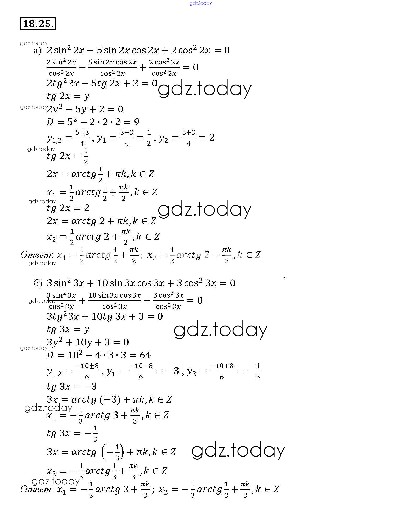 На страницах сайта gdz.today вы найдете учебный и вспомогательный материал, направленный на улучшения знаний школьной программы. ГДЗ - онлайн мир знаний §18. Тригонометрические уравнения Глава 3 18. 25 Задачнику по Алгебре для 10-11 класса Мордкович, Денищева Базовый уровень Мнемозина 2015