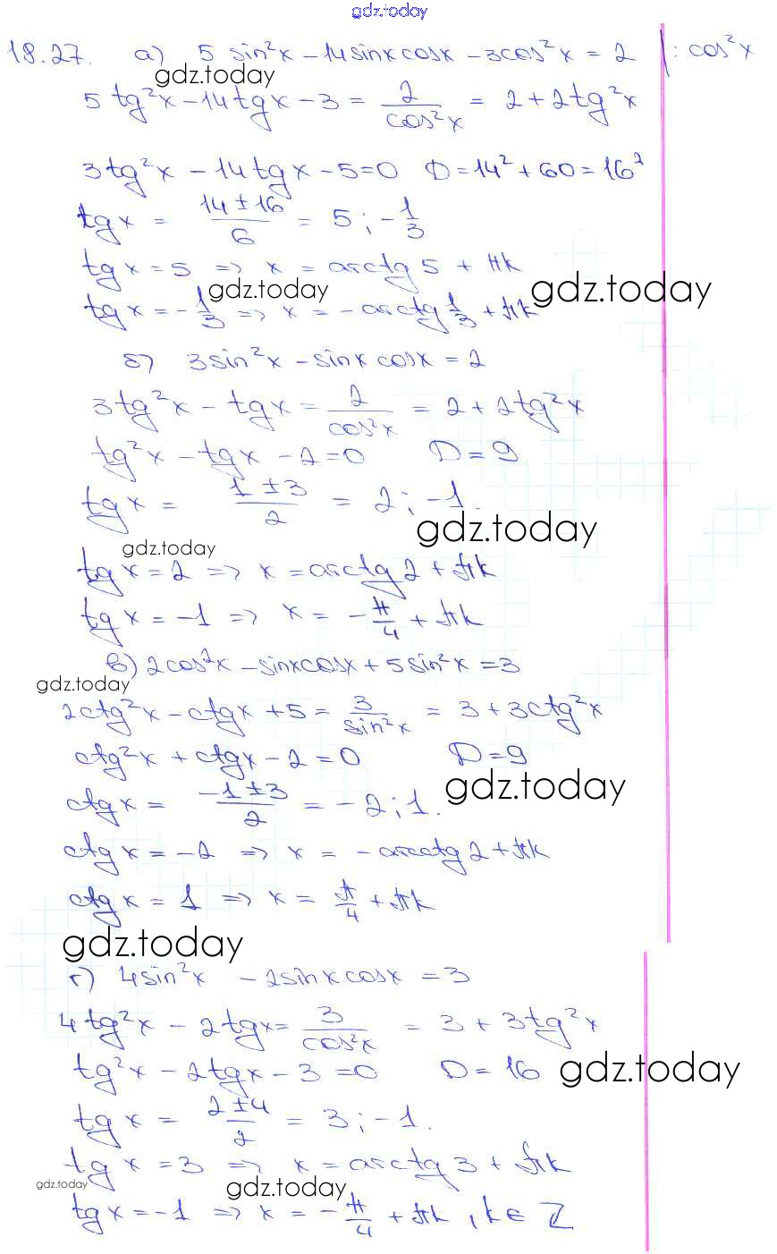 На страницах сайта gdz.today вы найдете учебный и вспомогательный материал, направленный на улучшения знаний школьной программы. ГДЗ - онлайн мир знаний §18. Тригонометрические уравнения Глава 3 18. 27 Задачнику по Алгебре для 10-11 класса Мордкович, Денищева Базовый уровень Мнемозина 2015