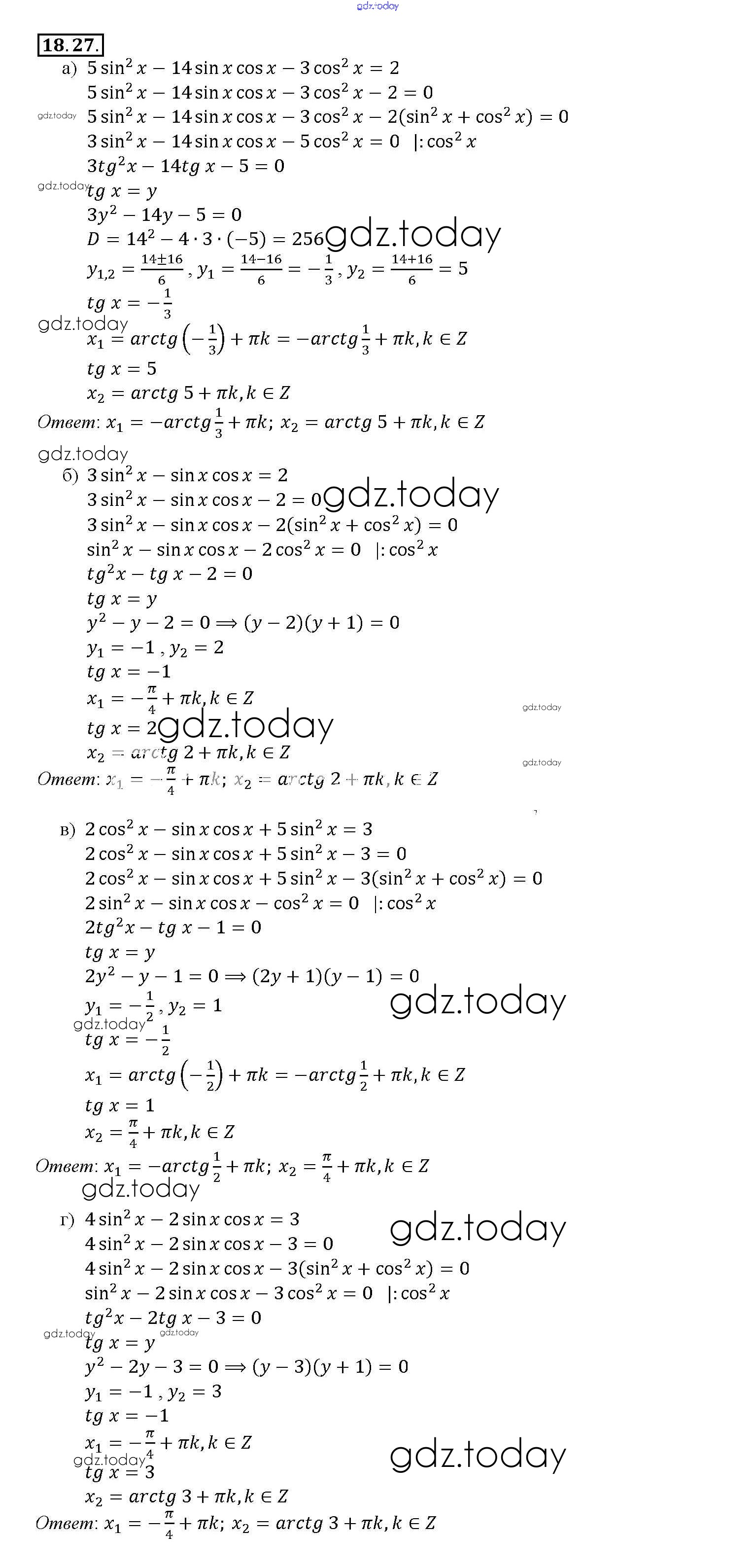 Ответы к §18. Тригонометрические уравнения Глава 3 18. 27 Задачнику по Алгебре для 10-11 класса Мордкович, Денищева Базовый уровень Мнемозина 2015