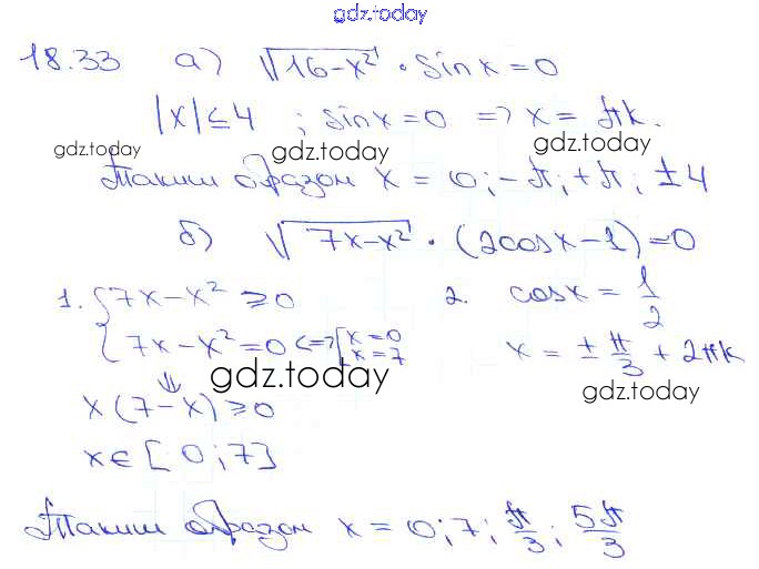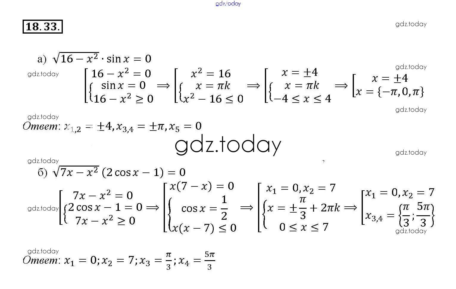 На страницах сайта gdz.today вы найдете учебный и вспомогательный материал, направленный на улучшения знаний школьной программы. ГДЗ - онлайн мир знаний §18. Тригонометрические уравнения Глава 3 18. 33 Задачнику по Алгебре для 10-11 класса Мордкович, Денищева Базовый уровень Мнемозина 2015