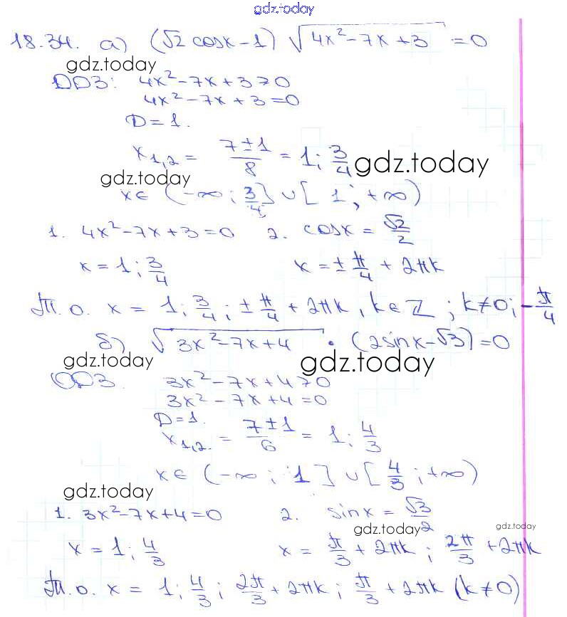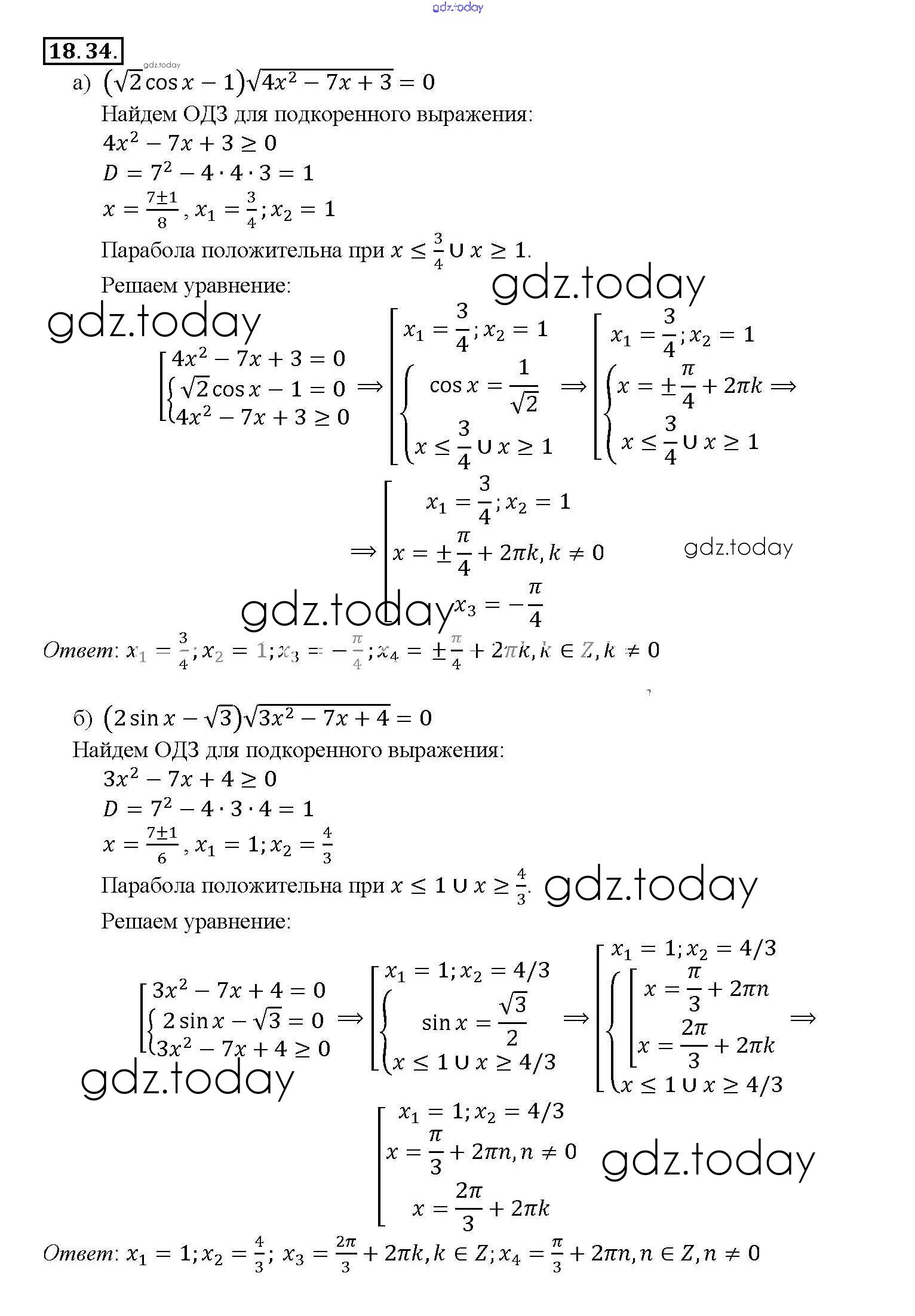На страницах сайта gdz.today вы найдете учебный и вспомогательный материал, направленный на улучшения знаний школьной программы. ГДЗ - онлайн мир знаний §18. Тригонометрические уравнения Глава 3 18. 34 Задачнику по Алгебре для 10-11 класса Мордкович, Денищева Базовый уровень Мнемозина 2015