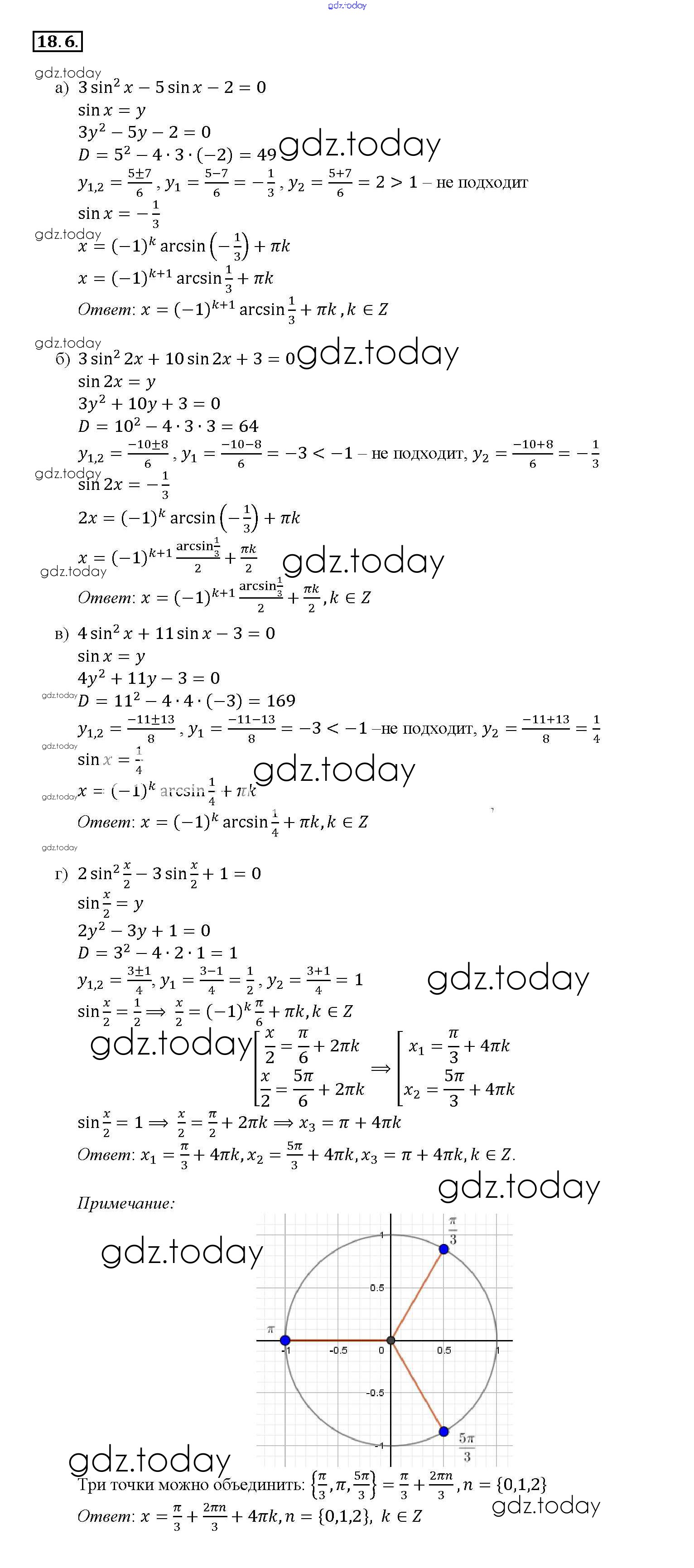 Ответы к §18. Тригонометрические уравнения Глава 3 18. 6 Задачнику по Алгебре для 10-11 класса Мордкович, Денищева Базовый уровень Мнемозина 2015