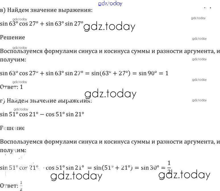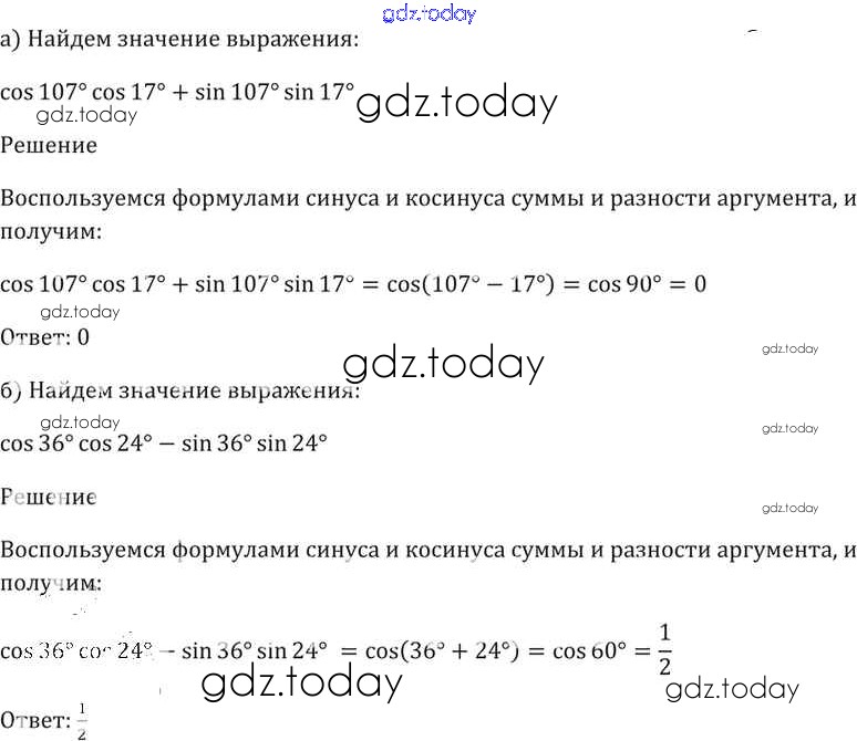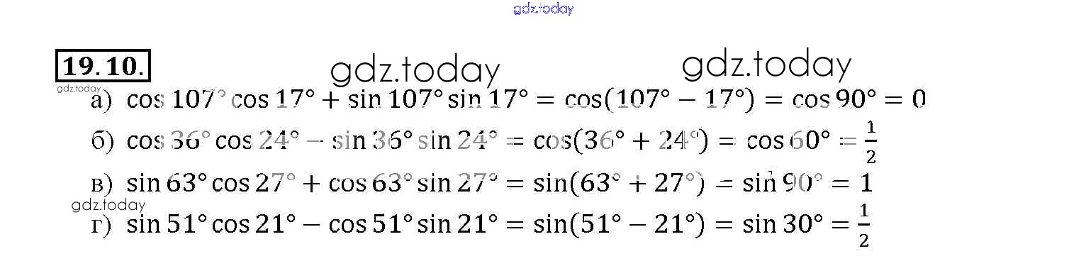 На страницах сайта gdz.today вы найдете учебный и вспомогательный материал, направленный на улучшения знаний школьной программы. ГДЗ - онлайн мир знаний §19. Синус и косинус суммы и разности аргументов Глава 4 19. 10 Задачнику по Алгебре для 10-11 класса Мордкович, Денищева Базовый уровень Мнемозина 2015