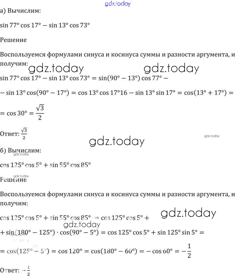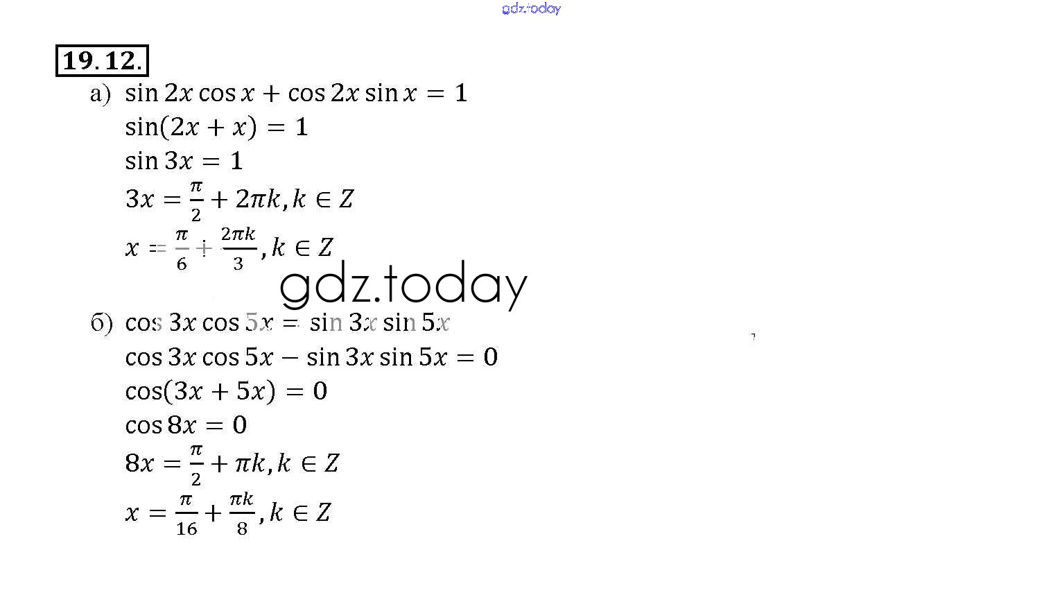 На страницах сайта gdz.today вы найдете учебный и вспомогательный материал, направленный на улучшения знаний школьной программы. ГДЗ - онлайн мир знаний §19. Синус и косинус суммы и разности аргументов Глава 4 19. 12 Задачнику по Алгебре для 10-11 класса Мордкович, Денищева Базовый уровень Мнемозина 2015