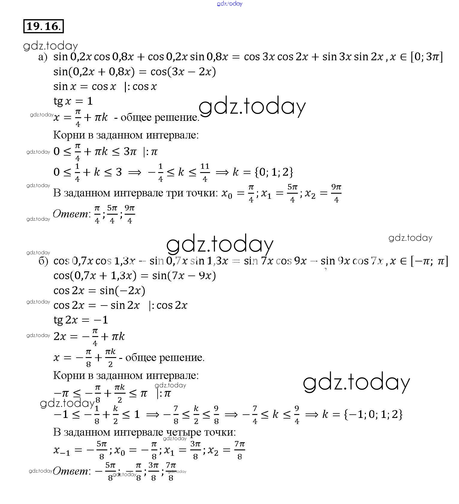 На страницах сайта gdz.today вы найдете учебный и вспомогательный материал, направленный на улучшения знаний школьной программы. ГДЗ - онлайн мир знаний §19. Синус и косинус суммы и разности аргументов Глава 4 19. 16 Задачнику по Алгебре для 10-11 класса Мордкович, Денищева Базовый уровень Мнемозина 2015