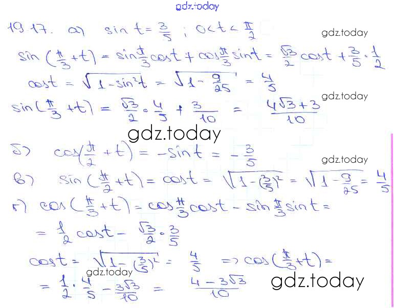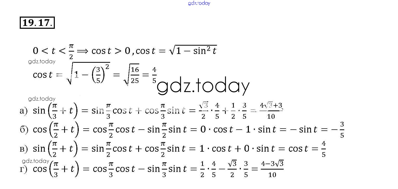 Ответы к §19. Синус и косинус суммы и разности аргументов Глава 4 19. 17 Задачнику по Алгебре для 10-11 класса Мордкович, Денищева Базовый уровень Мнемозина 2015
