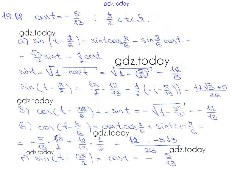 Ответы к §19. Синус и косинус суммы и разности аргументов Глава 4 19. 18 Задачнику по Алгебре для 10-11 класса Мордкович, Денищева Базовый уровень Мнемозина 2015
