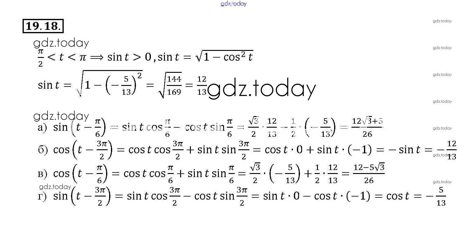 На страницах сайта gdz.today вы найдете учебный и вспомогательный материал, направленный на улучшения знаний школьной программы. ГДЗ - онлайн мир знаний §19. Синус и косинус суммы и разности аргументов Глава 4 19. 18 Задачнику по Алгебре для 10-11 класса Мордкович, Денищева Базовый уровень Мнемозина 2015