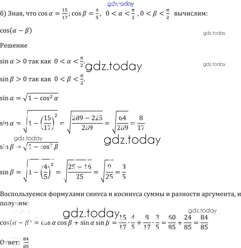 Ответы к §19. Синус и косинус суммы и разности аргументов Глава 4 19. 26 Задачнику по Алгебре для 10-11 класса Мордкович, Денищева Базовый уровень Мнемозина 2015