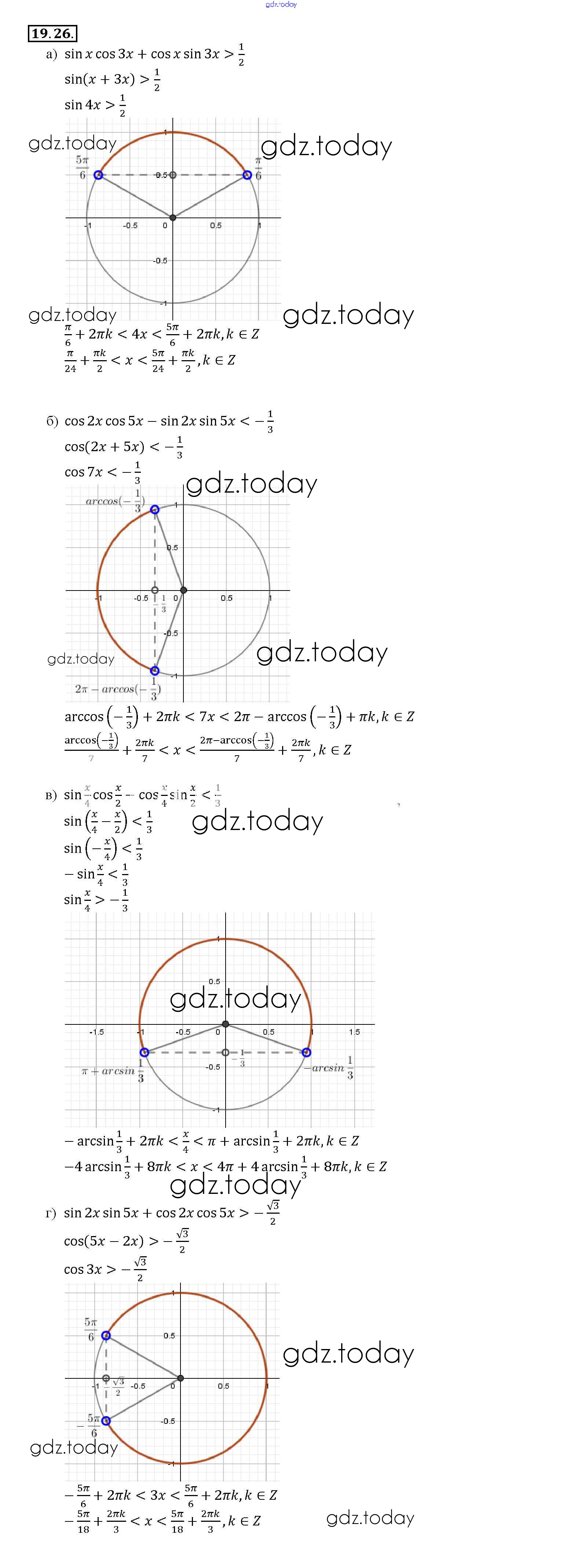На страницах сайта gdz.today вы найдете учебный и вспомогательный материал, направленный на улучшения знаний школьной программы. ГДЗ - онлайн мир знаний §19. Синус и косинус суммы и разности аргументов Глава 4 19. 26 Задачнику по Алгебре для 10-11 класса Мордкович, Денищева Базовый уровень Мнемозина 2015