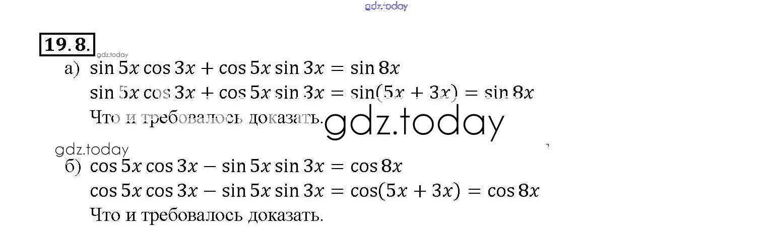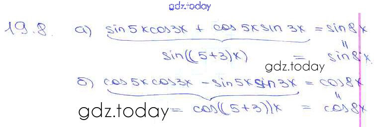 На страницах сайта gdz.today вы найдете учебный и вспомогательный материал, направленный на улучшения знаний школьной программы. ГДЗ - онлайн мир знаний §19. Синус и косинус суммы и разности аргументов Глава 4 19. 8 Задачнику по Алгебре для 10-11 класса Мордкович, Денищева Базовый уровень Мнемозина 2015