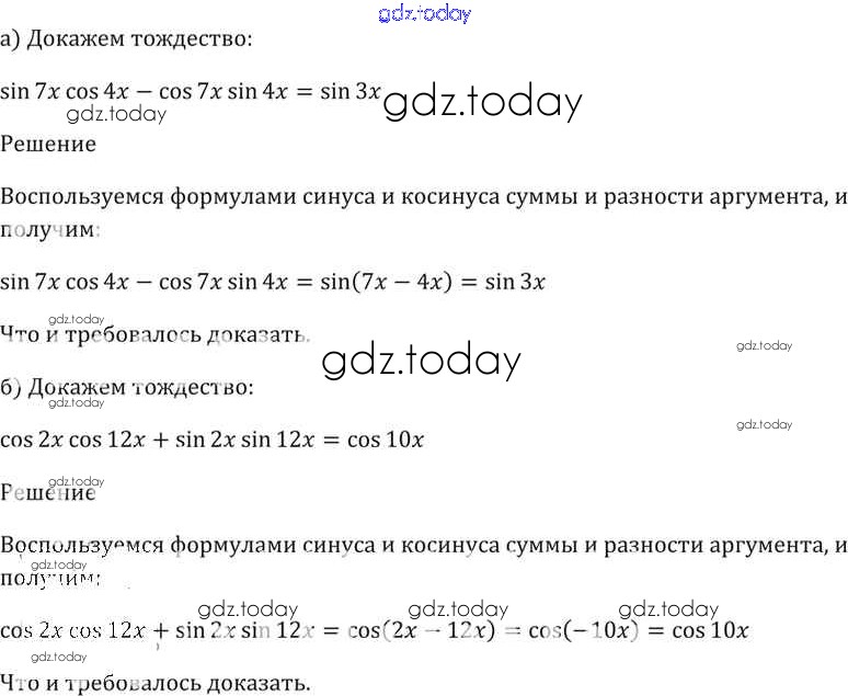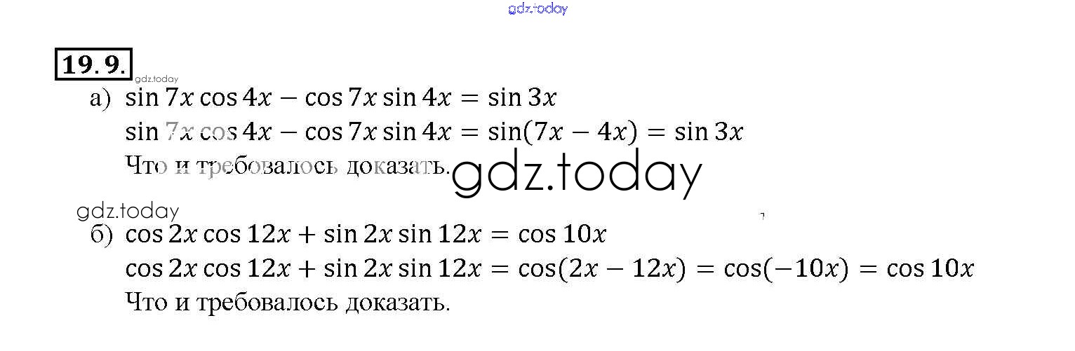 На страницах сайта gdz.today вы найдете учебный и вспомогательный материал, направленный на улучшения знаний школьной программы. ГДЗ - онлайн мир знаний §19. Синус и косинус суммы и разности аргументов Глава 4 19. 9 Задачнику по Алгебре для 10-11 класса Мордкович, Денищева Базовый уровень Мнемозина 2015