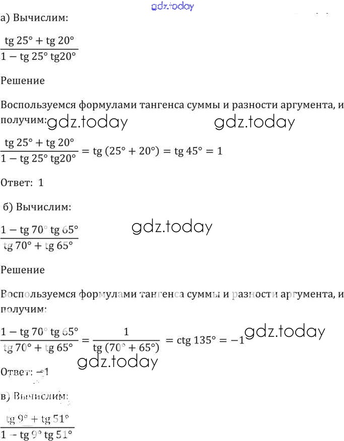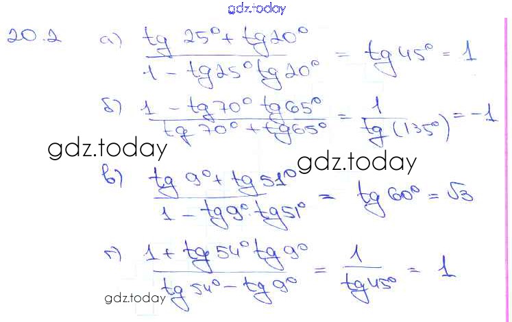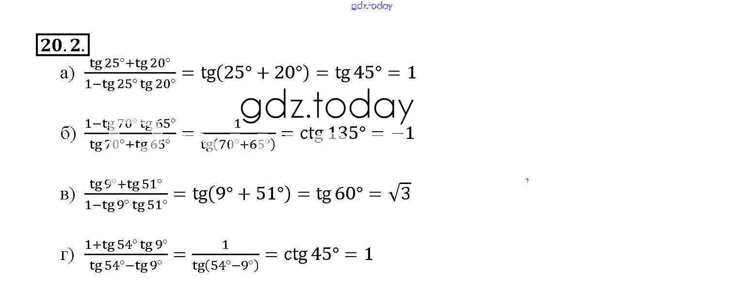 Ответы к §20. Тангенс суммы и разности аргументов Глава 4 20. 2 Задачнику по Алгебре для 10-11 класса Мордкович, Денищева Базовый уровень Мнемозина 2015