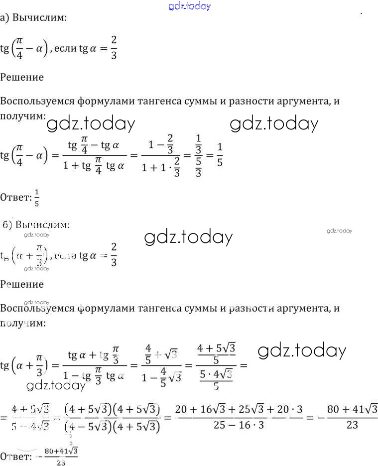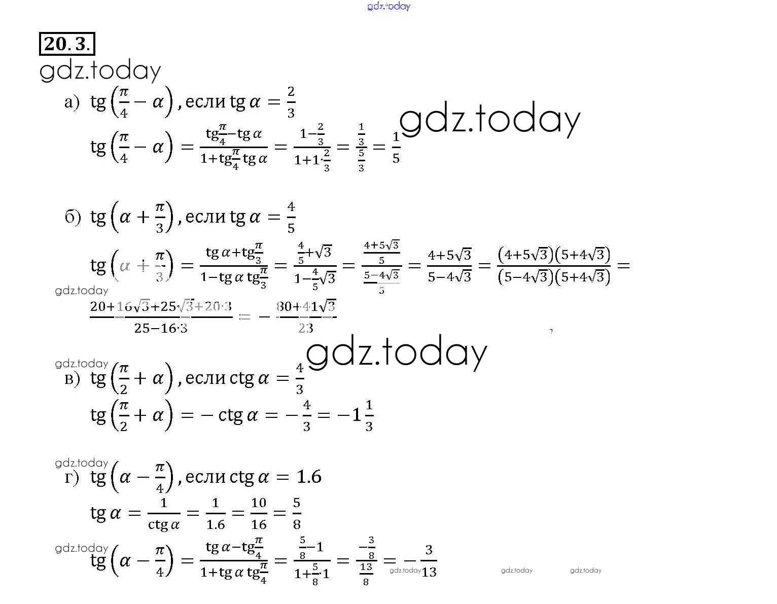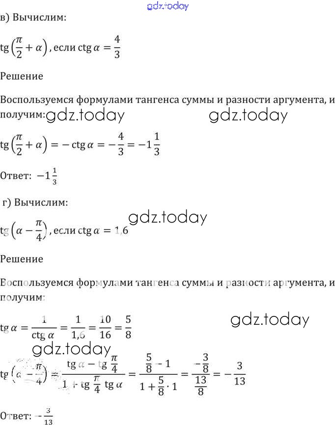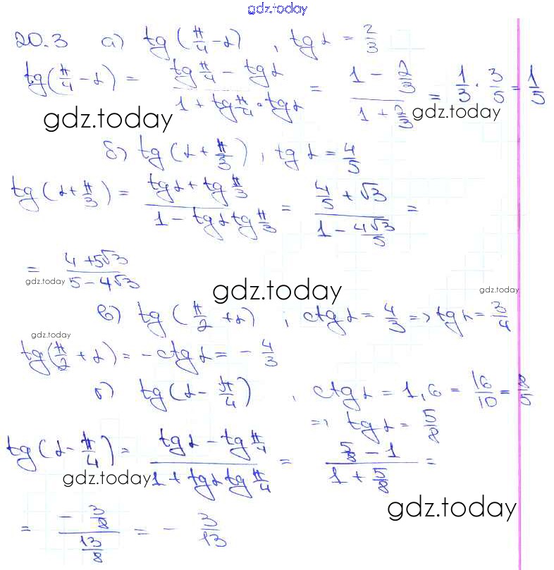 Ответы к §20. Тангенс суммы и разности аргументов Глава 4 20. 3 Задачнику по Алгебре для 10-11 класса Мордкович, Денищева Базовый уровень Мнемозина 2015