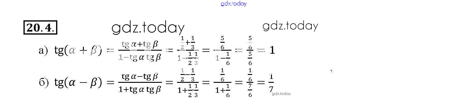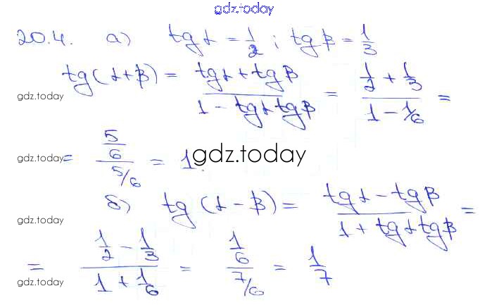 Ответы к §20. Тангенс суммы и разности аргументов Глава 4 20. 4 Задачнику по Алгебре для 10-11 класса Мордкович, Денищева Базовый уровень Мнемозина 2015