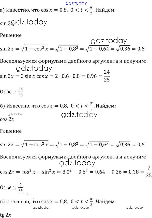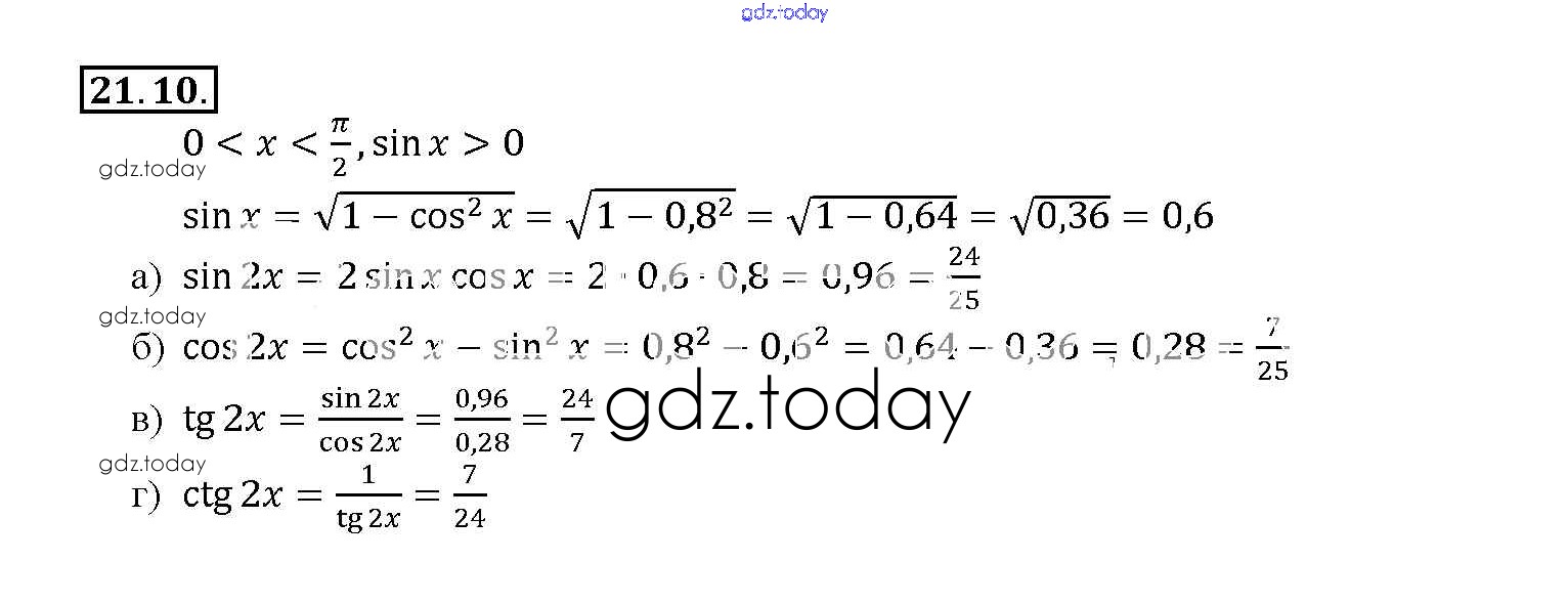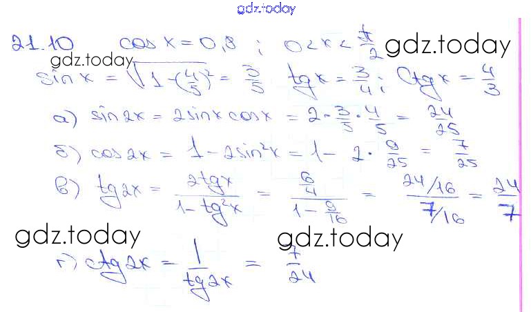 На страницах сайта gdz.today вы найдете учебный и вспомогательный материал, направленный на улучшения знаний школьной программы. ГДЗ - онлайн мир знаний §21. Формулы двойного аргумента Глава 4 21. 10 Задачнику по Алгебре для 10-11 класса Мордкович, Денищева Базовый уровень Мнемозина 2015
