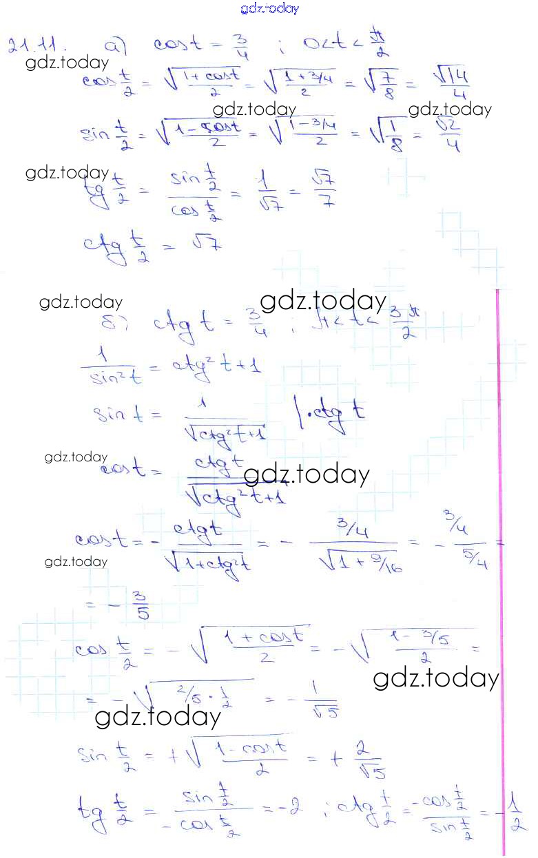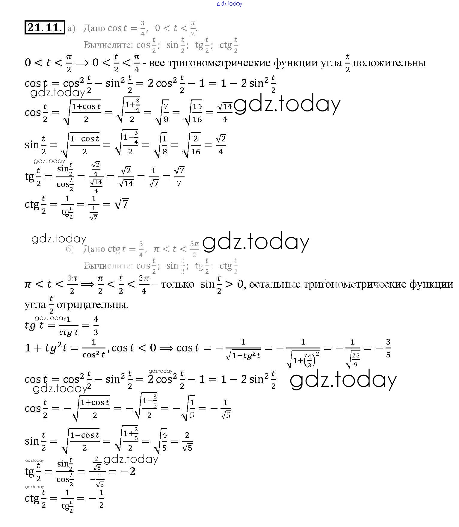 Ответы к §21. Формулы двойного аргумента Глава 4 21. 11 Задачнику по Алгебре для 10-11 класса Мордкович, Денищева Базовый уровень Мнемозина 2015