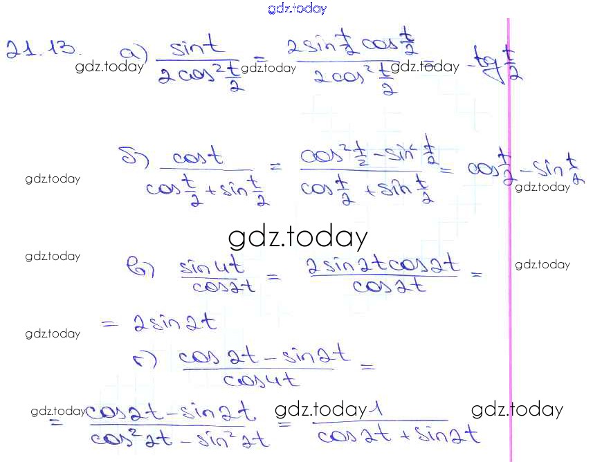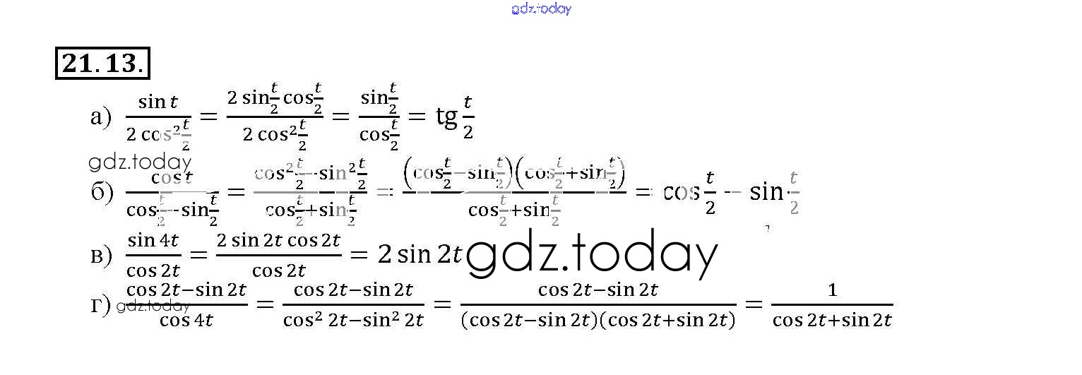 Ответы к §21. Формулы двойного аргумента Глава 4 21. 13 Задачнику по Алгебре для 10-11 класса Мордкович, Денищева Базовый уровень Мнемозина 2015