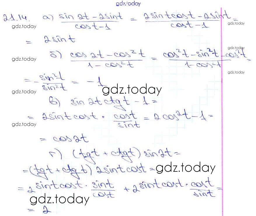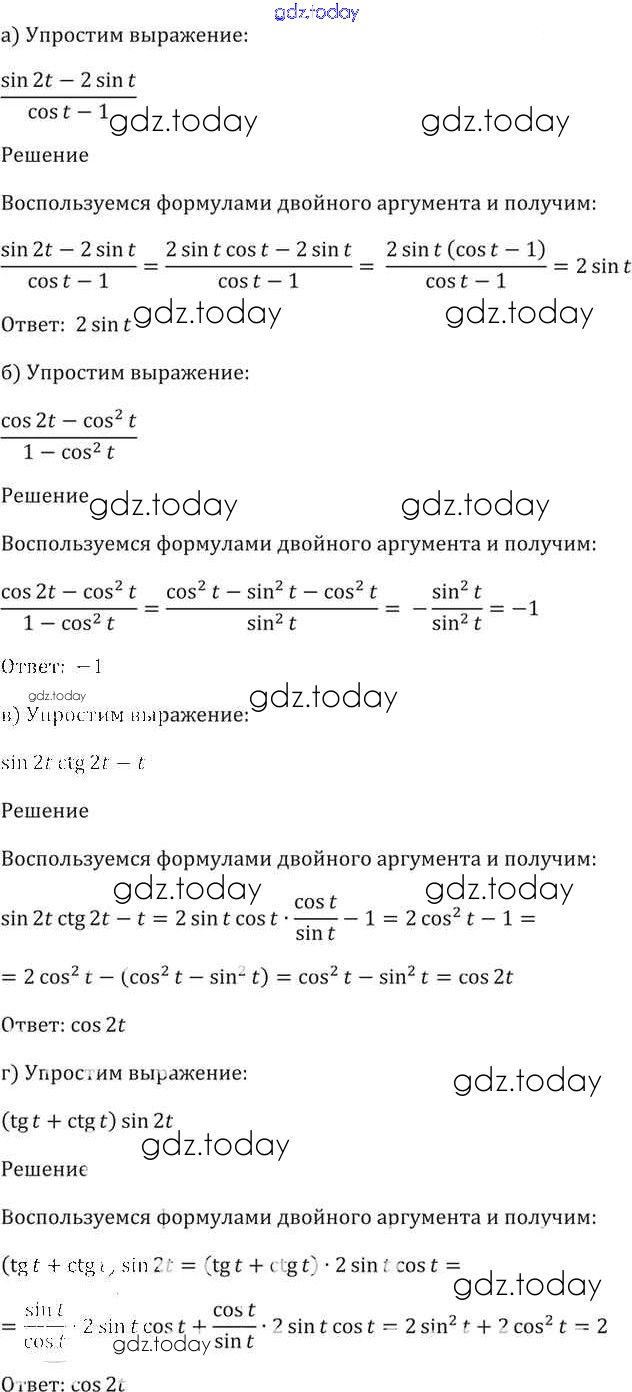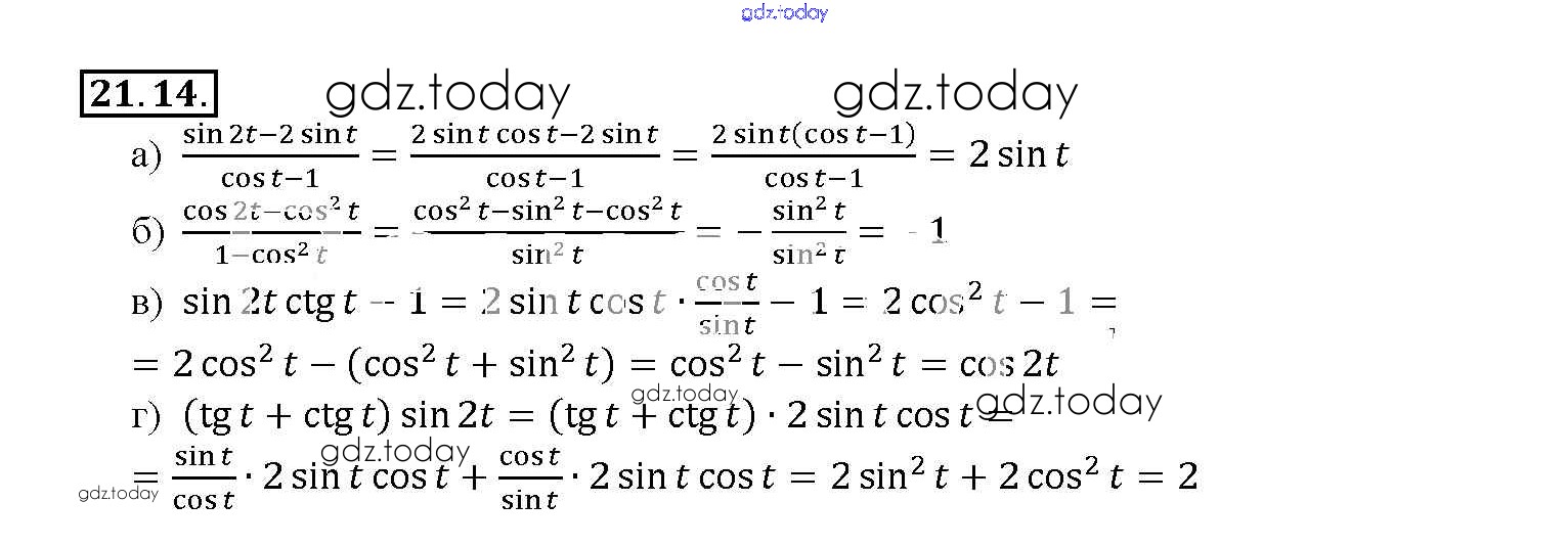 На страницах сайта gdz.today вы найдете учебный и вспомогательный материал, направленный на улучшения знаний школьной программы. ГДЗ - онлайн мир знаний §21. Формулы двойного аргумента Глава 4 21. 14 Задачнику по Алгебре для 10-11 класса Мордкович, Денищева Базовый уровень Мнемозина 2015
