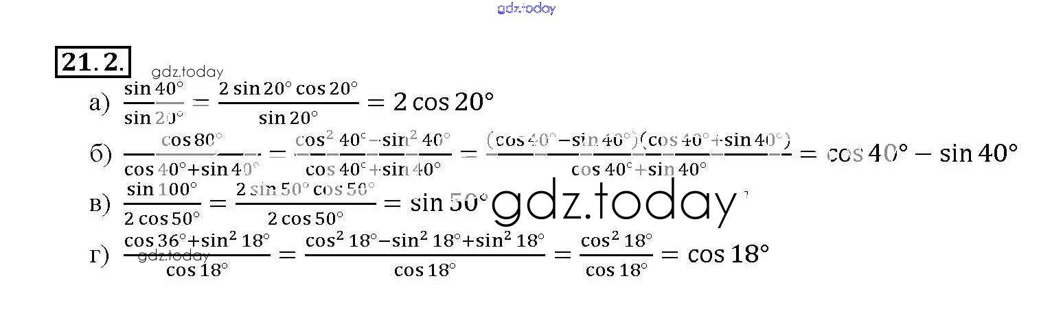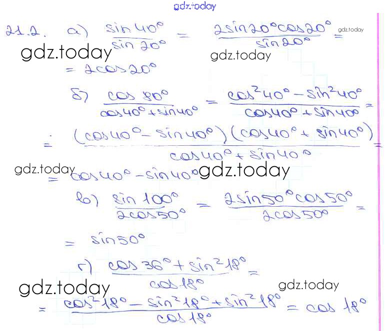 Ответы к §21. Формулы двойного аргумента Глава 4 21. 2 Задачнику по Алгебре для 10-11 класса Мордкович, Денищева Базовый уровень Мнемозина 2015
