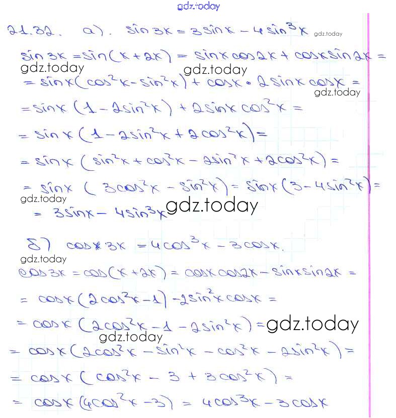 На страницах сайта gdz.today вы найдете учебный и вспомогательный материал, направленный на улучшения знаний школьной программы. ГДЗ - онлайн мир знаний §21. Формулы двойного аргумента Глава 4 21. 32 Задачнику по Алгебре для 10-11 класса Мордкович, Денищева Базовый уровень Мнемозина 2015