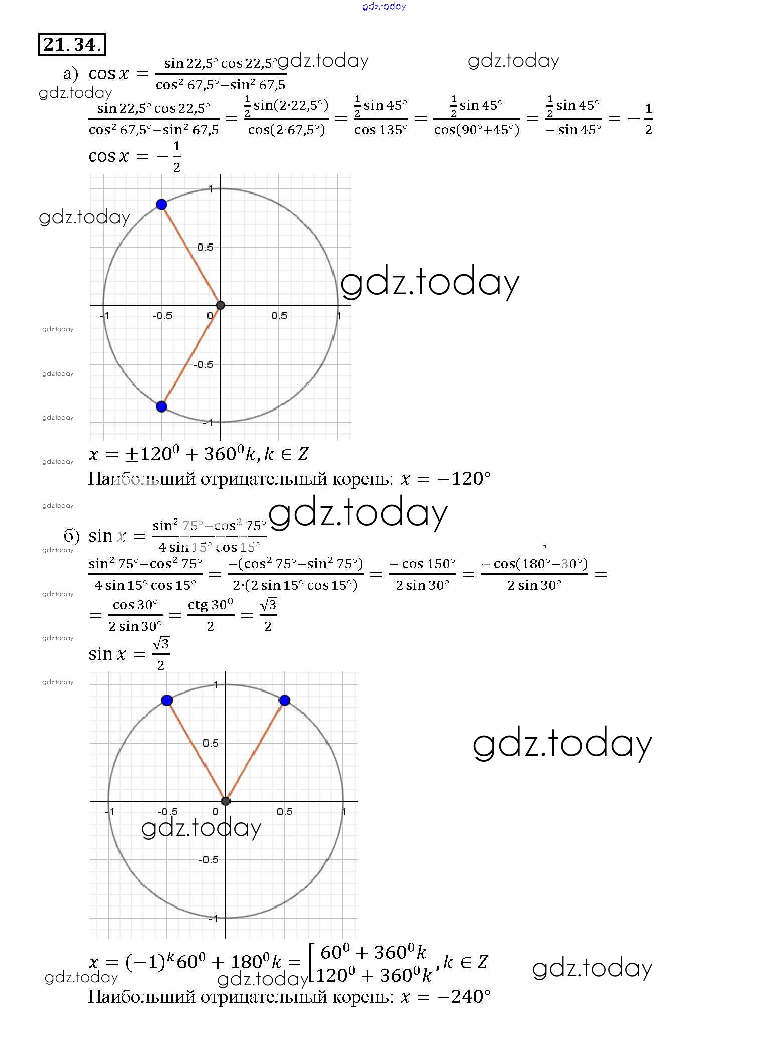 Ответы к §21. Формулы двойного аргумента Глава 4 21. 34 Задачнику по Алгебре для 10-11 класса Мордкович, Денищева Базовый уровень Мнемозина 2015