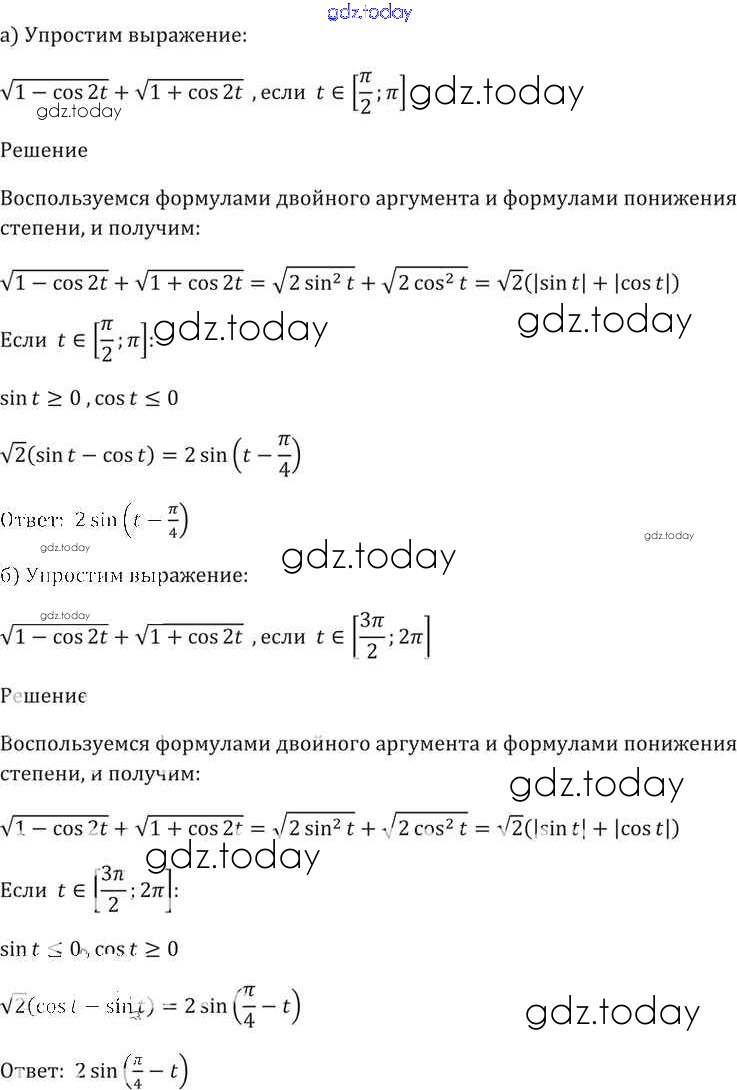 На страницах сайта gdz.today вы найдете учебный и вспомогательный материал, направленный на улучшения знаний школьной программы. ГДЗ - онлайн мир знаний §21. Формулы двойного аргумента Глава 4 21. 36 Задачнику по Алгебре для 10-11 класса Мордкович, Денищева Базовый уровень Мнемозина 2015