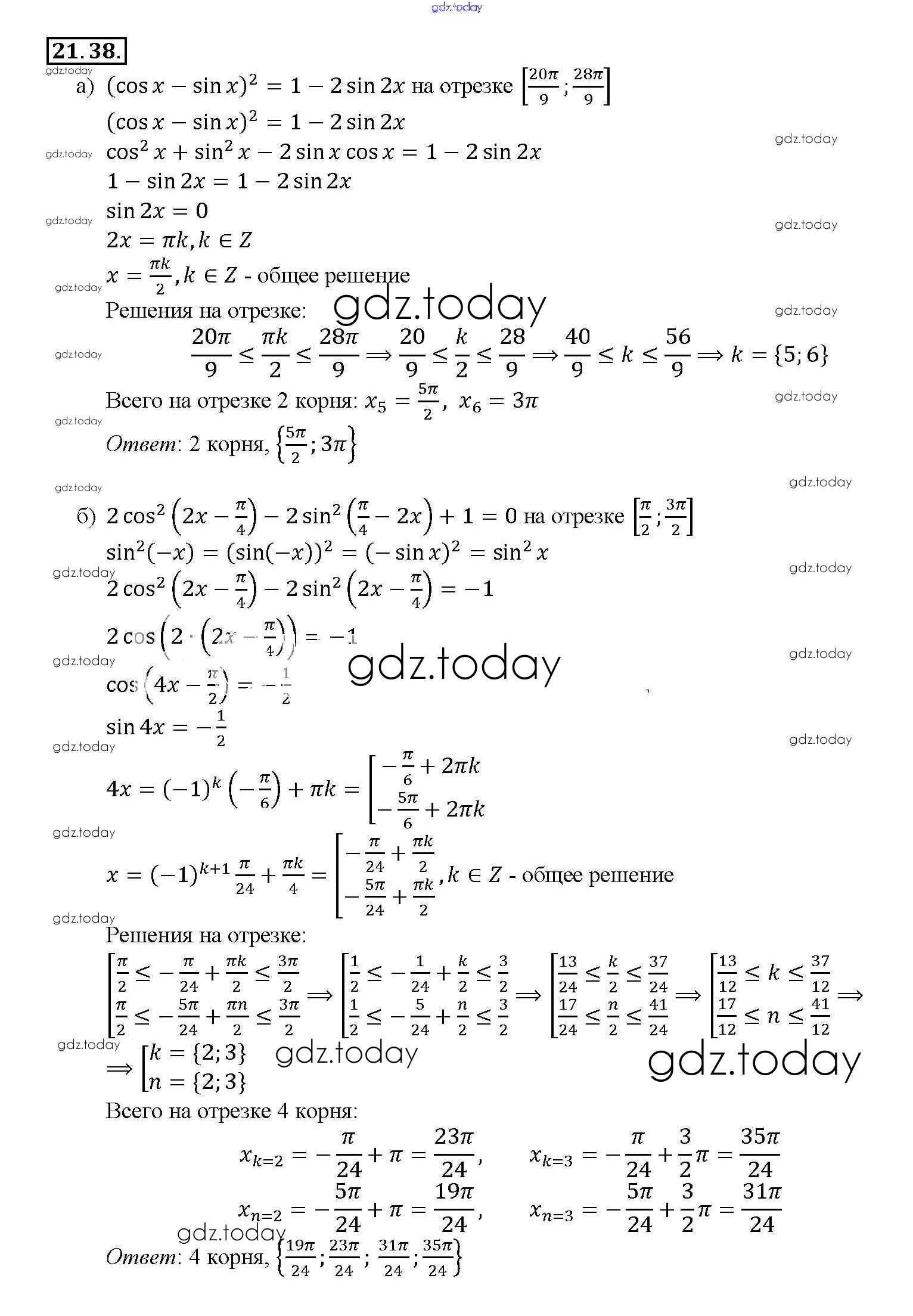 На страницах сайта gdz.today вы найдете учебный и вспомогательный материал, направленный на улучшения знаний школьной программы. ГДЗ - онлайн мир знаний §21. Формулы двойного аргумента Глава 4 21. 38 Задачнику по Алгебре для 10-11 класса Мордкович, Денищева Базовый уровень Мнемозина 2015