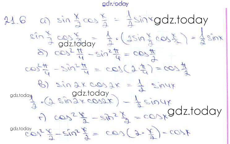 На страницах сайта gdz.today вы найдете учебный и вспомогательный материал, направленный на улучшения знаний школьной программы. ГДЗ - онлайн мир знаний §21. Формулы двойного аргумента Глава 4 21. 6 Задачнику по Алгебре для 10-11 класса Мордкович, Денищева Базовый уровень Мнемозина 2015