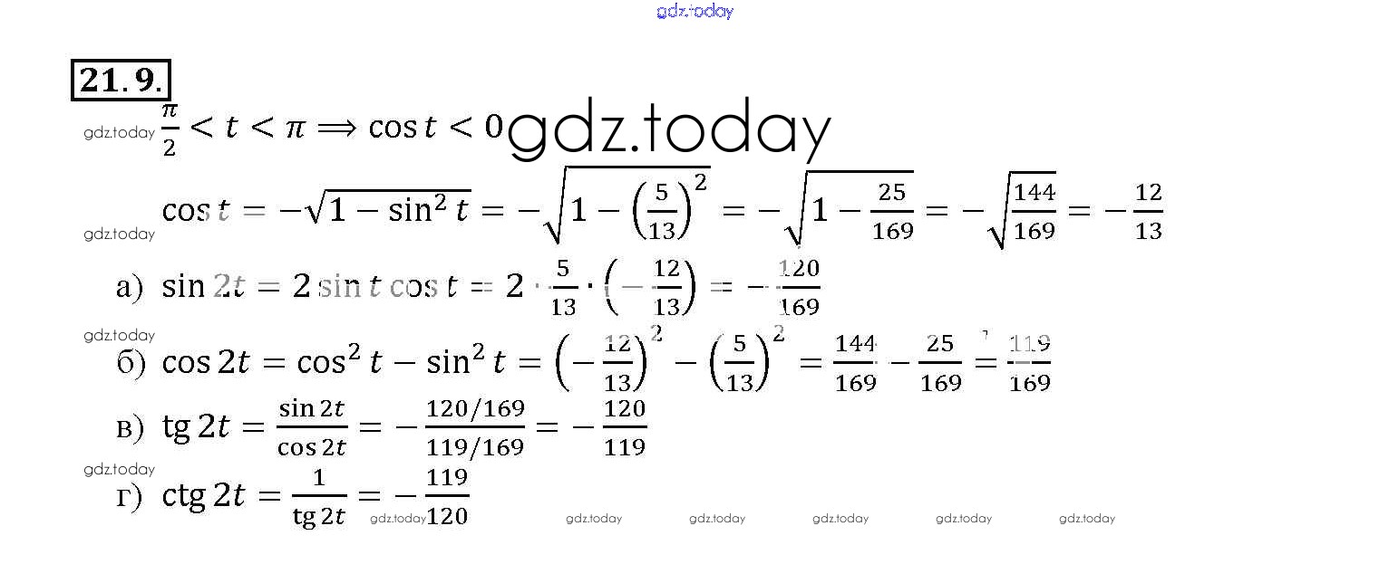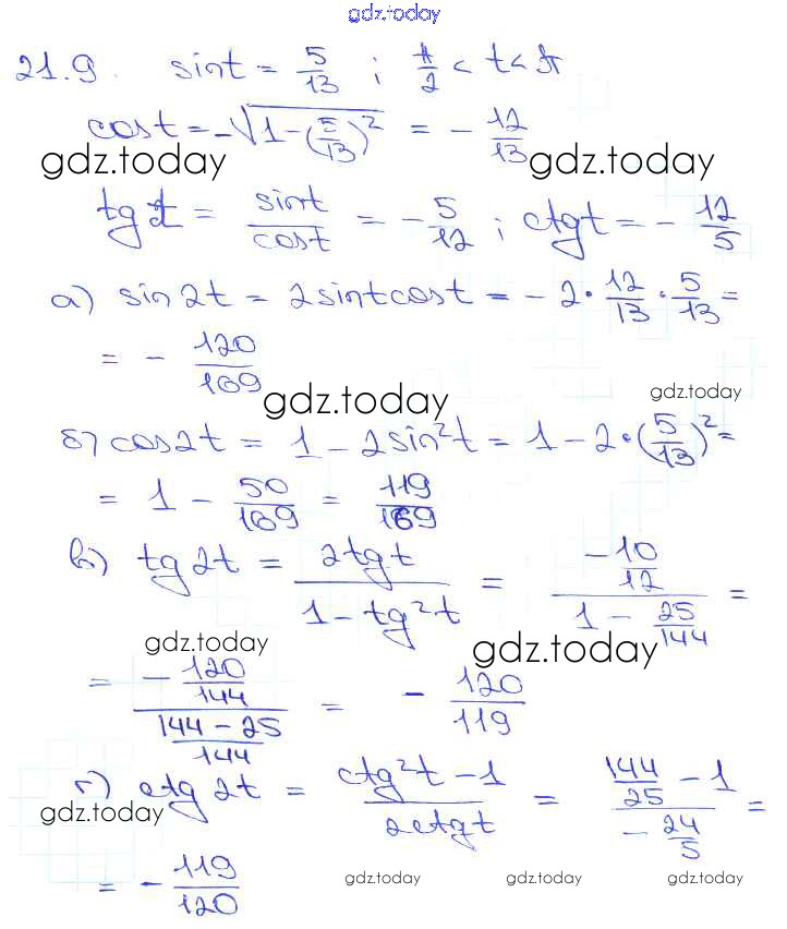 Ответы к §21. Формулы двойного аргумента Глава 4 21. 9 Задачнику по Алгебре для 10-11 класса Мордкович, Денищева Базовый уровень Мнемозина 2015