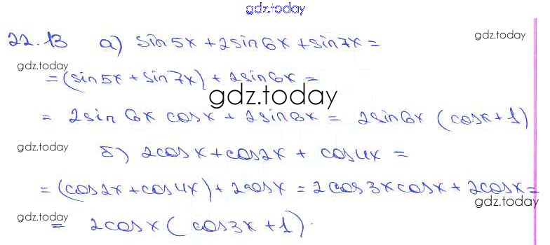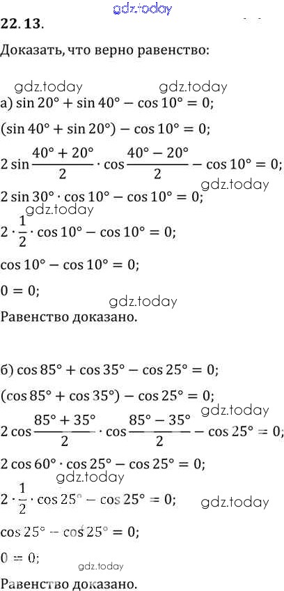 Ответы к §22. Преобразование суммы тригонометрических функций в произведения Глава 4 22. 13 Задачнику по Алгебре для 10-11 класса Мордкович, Денищева Базовый уровень Мнемозина 2015
