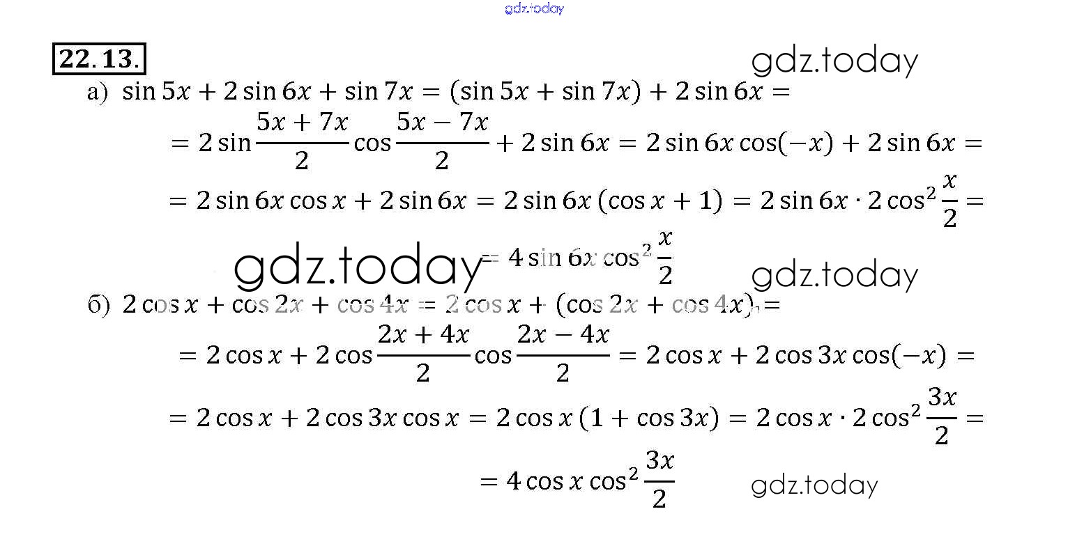 На страницах сайта gdz.today вы найдете учебный и вспомогательный материал, направленный на улучшения знаний школьной программы. ГДЗ - онлайн мир знаний §22. Преобразование суммы тригонометрических функций в произведения Глава 4 22. 13 Задачнику по Алгебре для 10-11 класса Мордкович, Денищева Базовый уровень Мнемозина 2015