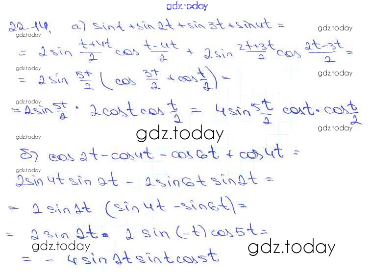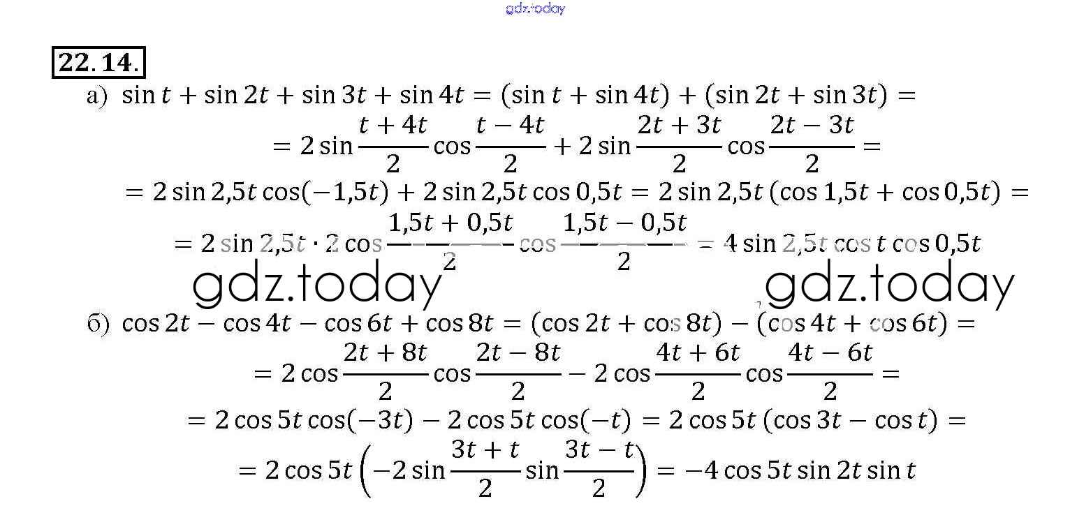 На страницах сайта gdz.today вы найдете учебный и вспомогательный материал, направленный на улучшения знаний школьной программы. ГДЗ - онлайн мир знаний §22. Преобразование суммы тригонометрических функций в произведения Глава 4 22. 14 Задачнику по Алгебре для 10-11 класса Мордкович, Денищева Базовый уровень Мнемозина 2015