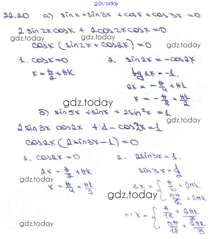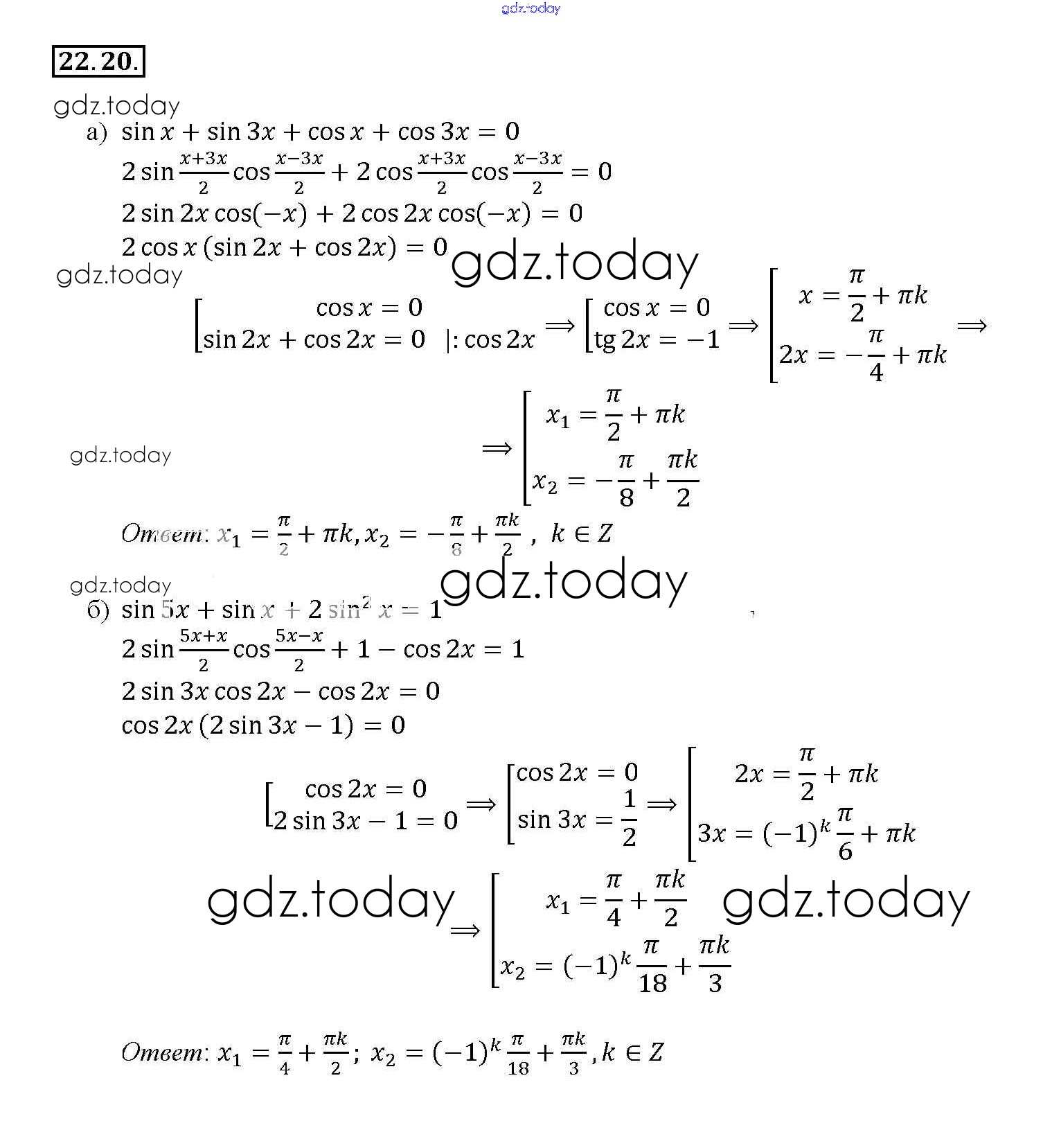 На страницах сайта gdz.today вы найдете учебный и вспомогательный материал, направленный на улучшения знаний школьной программы. ГДЗ - онлайн мир знаний §22. Преобразование суммы тригонометрических функций в произведения Глава 4 22. 20 Задачнику по Алгебре для 10-11 класса Мордкович, Денищева Базовый уровень Мнемозина 2015