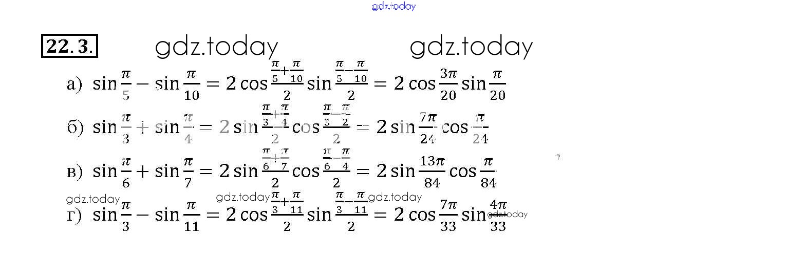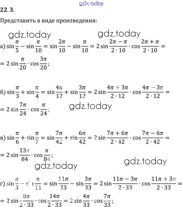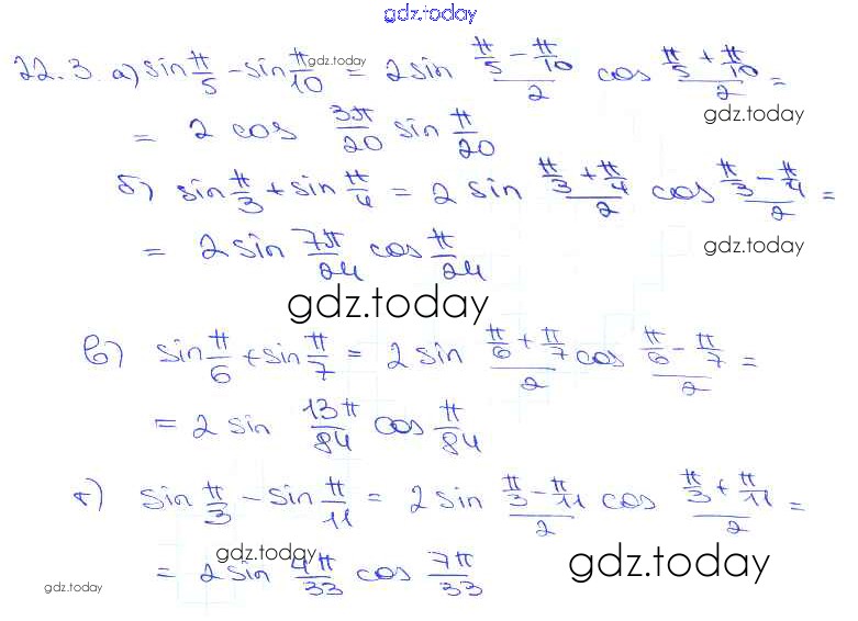 Ответы к §22. Преобразование суммы тригонометрических функций в произведения Глава 4 22. 3 Задачнику по Алгебре для 10-11 класса Мордкович, Денищева Базовый уровень Мнемозина 2015
