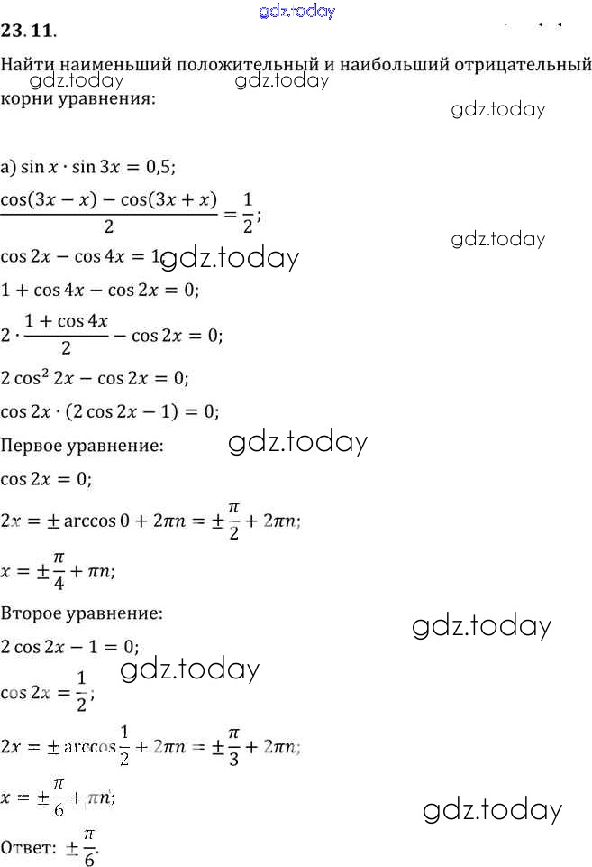 Ответы к §23. Преобразование произведений тригонометрических функций в суммы Глава 4 23. 11 Задачнику по Алгебре для 10-11 класса Мордкович, Денищева Базовый уровень Мнемозина 2015