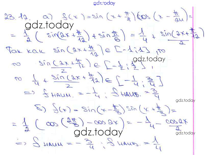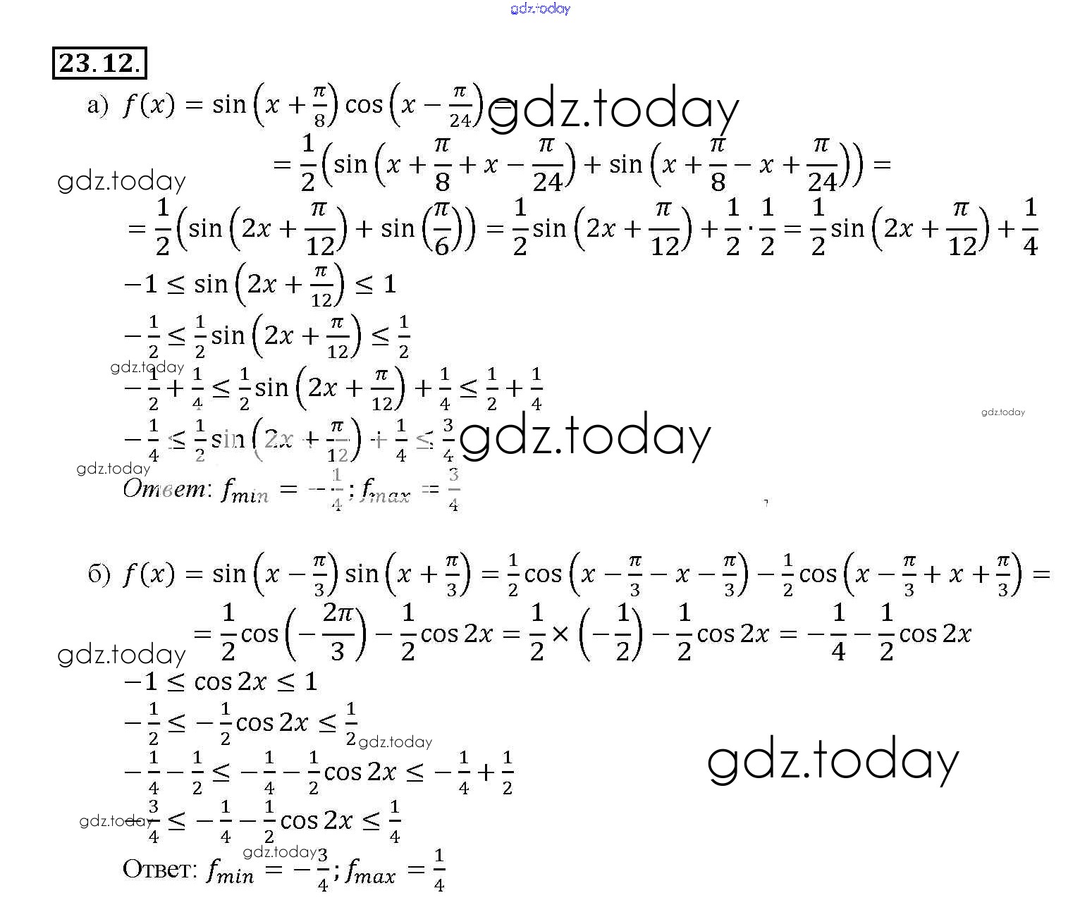 На страницах сайта gdz.today вы найдете учебный и вспомогательный материал, направленный на улучшения знаний школьной программы. ГДЗ - онлайн мир знаний §23. Преобразование произведений тригонометрических функций в суммы Глава 4 23. 12 Задачнику по Алгебре для 10-11 класса Мордкович, Денищева Базовый уровень Мнемозина 2015