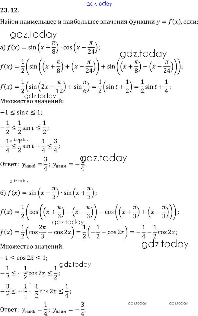 Ответы к §23. Преобразование произведений тригонометрических функций в суммы Глава 4 23. 12 Задачнику по Алгебре для 10-11 класса Мордкович, Денищева Базовый уровень Мнемозина 2015