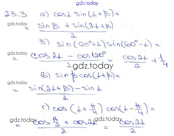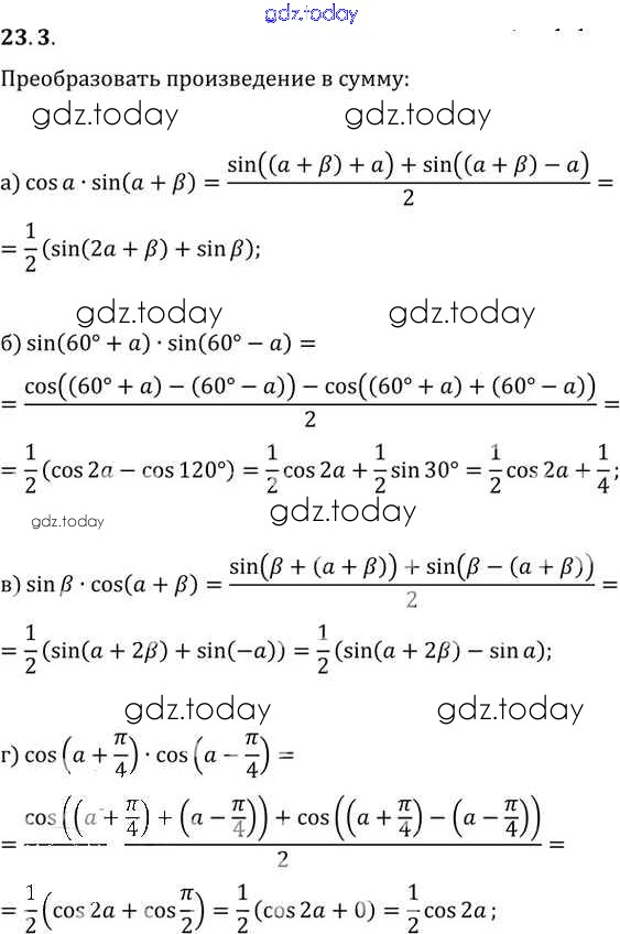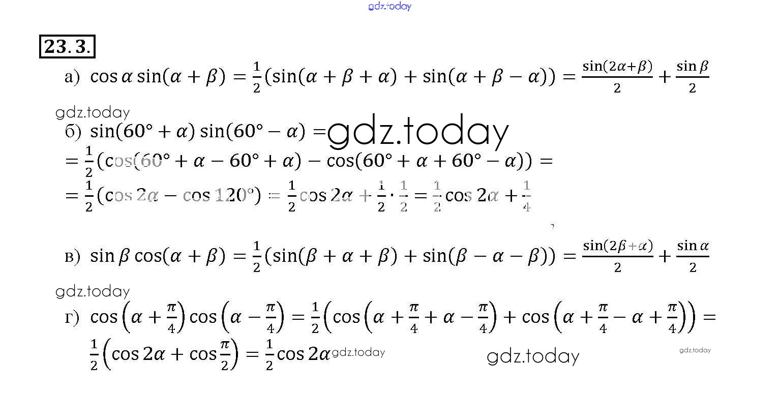 Ответы к §23. Преобразование произведений тригонометрических функций в суммы Глава 4 23. 3 Задачнику по Алгебре для 10-11 класса Мордкович, Денищева Базовый уровень Мнемозина 2015