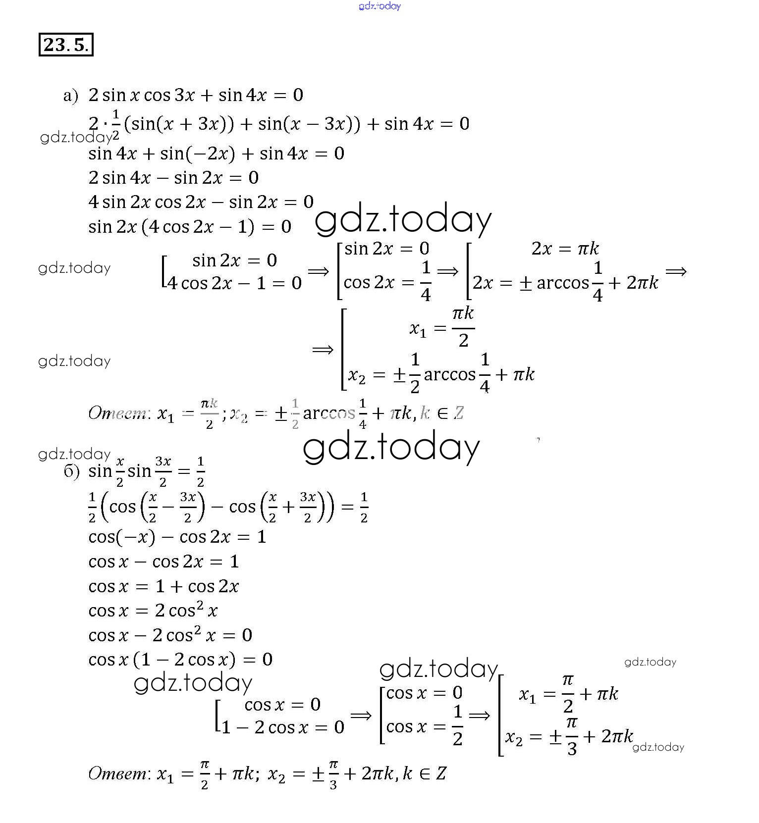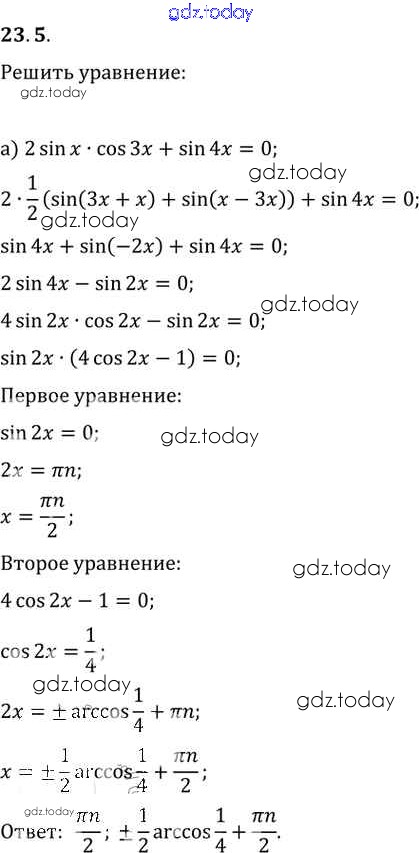 На страницах сайта gdz.today вы найдете учебный и вспомогательный материал, направленный на улучшения знаний школьной программы. ГДЗ - онлайн мир знаний §23. Преобразование произведений тригонометрических функций в суммы Глава 4 23. 5 Задачнику по Алгебре для 10-11 класса Мордкович, Денищева Базовый уровень Мнемозина 2015