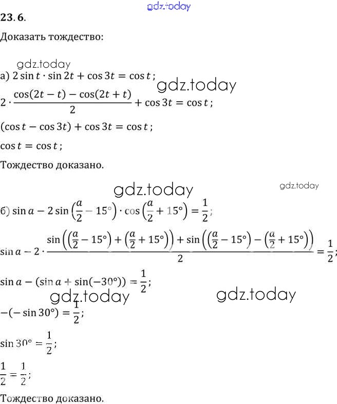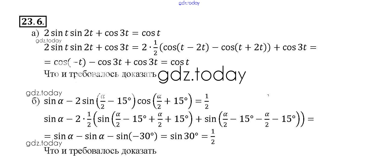 Ответы к §23. Преобразование произведений тригонометрических функций в суммы Глава 4 23. 6 Задачнику по Алгебре для 10-11 класса Мордкович, Денищева Базовый уровень Мнемозина 2015