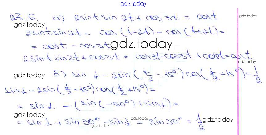 На страницах сайта gdz.today вы найдете учебный и вспомогательный материал, направленный на улучшения знаний школьной программы. ГДЗ - онлайн мир знаний §23. Преобразование произведений тригонометрических функций в суммы Глава 4 23. 6 Задачнику по Алгебре для 10-11 класса Мордкович, Денищева Базовый уровень Мнемозина 2015