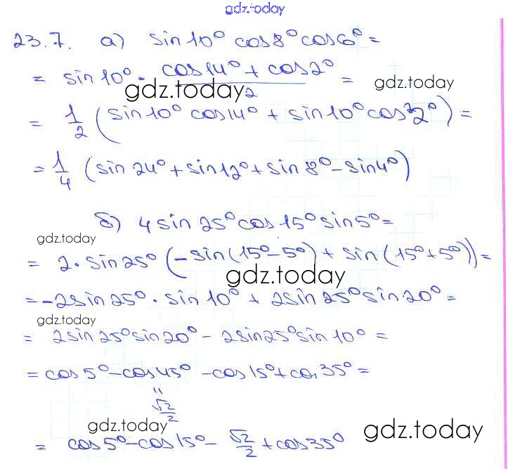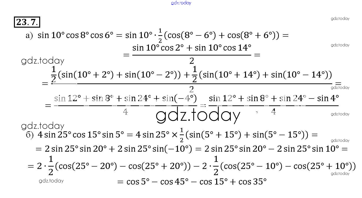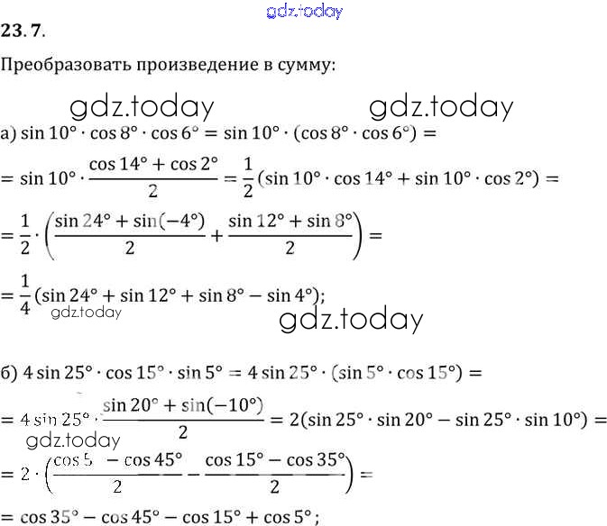На страницах сайта gdz.today вы найдете учебный и вспомогательный материал, направленный на улучшения знаний школьной программы. ГДЗ - онлайн мир знаний §23. Преобразование произведений тригонометрических функций в суммы Глава 4 23. 7 Задачнику по Алгебре для 10-11 класса Мордкович, Денищева Базовый уровень Мнемозина 2015