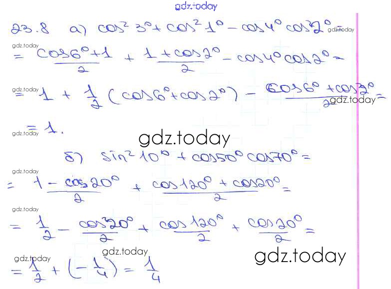 На страницах сайта gdz.today вы найдете учебный и вспомогательный материал, направленный на улучшения знаний школьной программы. ГДЗ - онлайн мир знаний §23. Преобразование произведений тригонометрических функций в суммы Глава 4 23. 8 Задачнику по Алгебре для 10-11 класса Мордкович, Денищева Базовый уровень Мнемозина 2015