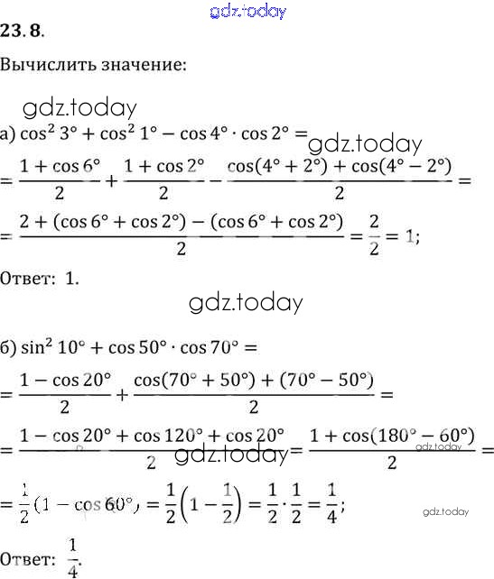 Ответы к §23. Преобразование произведений тригонометрических функций в суммы Глава 4 23. 8 Задачнику по Алгебре для 10-11 класса Мордкович, Денищева Базовый уровень Мнемозина 2015