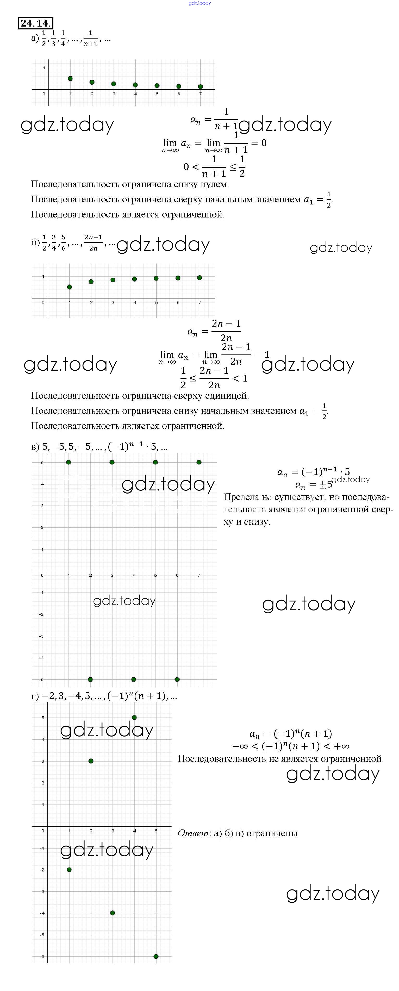 Ответы к §24. Предел последовательности Глава 5 24. 14 Задачнику по Алгебре для 10-11 класса Мордкович, Денищева Базовый уровень Мнемозина 2015