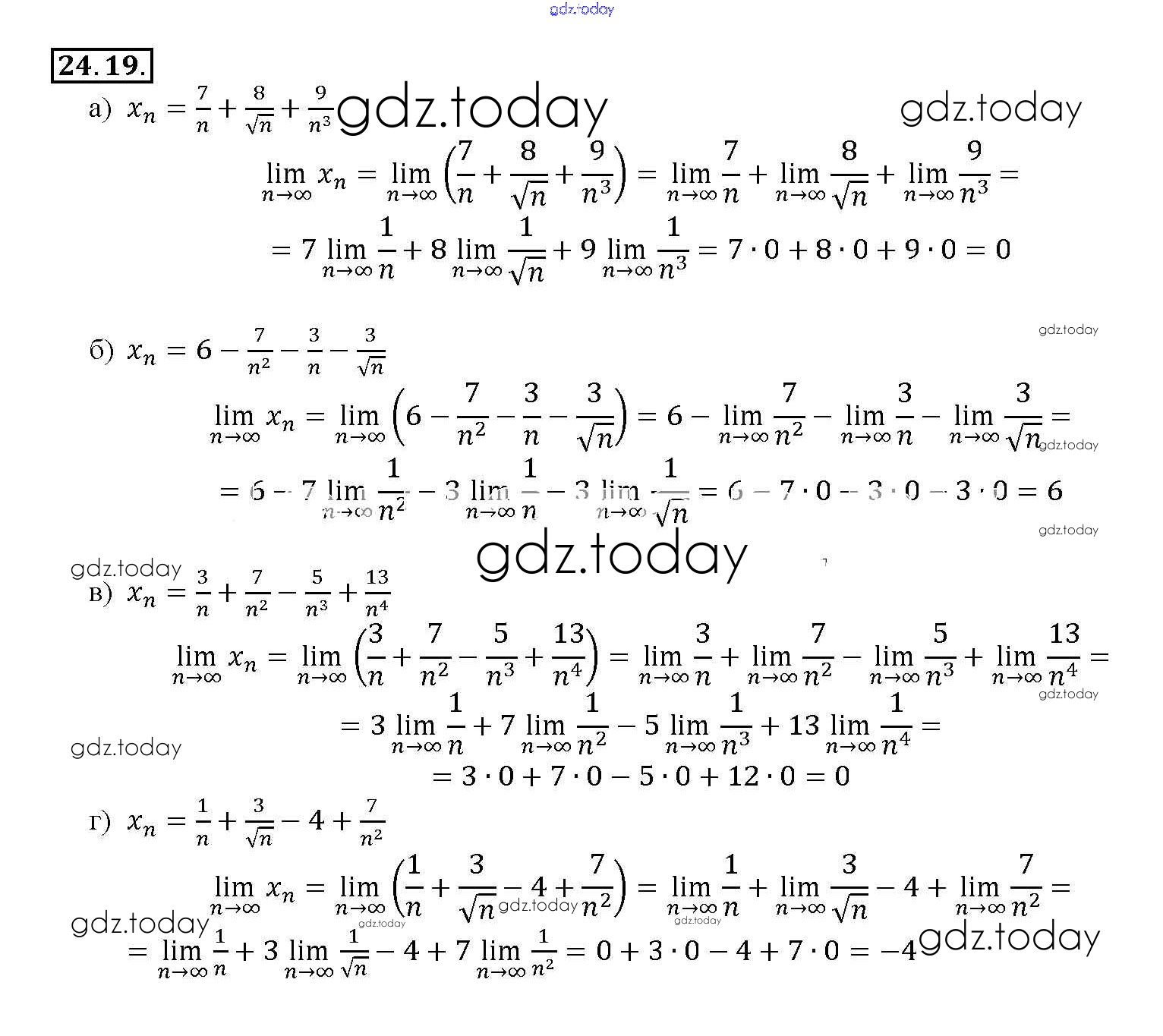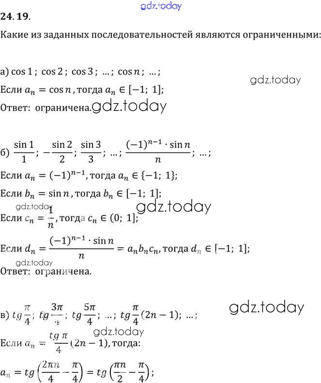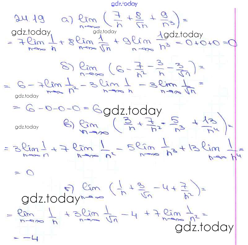 Ответы к §24. Предел последовательности Глава 5 24. 19 Задачнику по Алгебре для 10-11 класса Мордкович, Денищева Базовый уровень Мнемозина 2015
